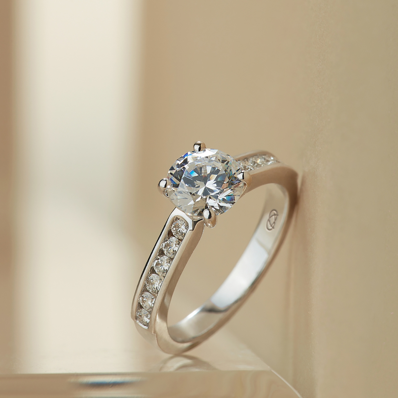 แหวนเพชร Channel Pave Setting คือเครื่องประดับที่ผสานความงดงาม ความทนทาน และความประณีตเข้าไว้ด้วยกัน สร้างความประทับใจและเป็นสัญลักษณ์แห่งความทรงจำที่ไม่มีวันเลือนหาย ผสมผสานความลงตัวระหว่างดีไซน์ที่เรียบหรูและการฝังเพชรอย่างประณีต เพชรถูกจัดเรียงในร่องที่สร้างขึ้นระหว่างขอบตัวเรือนทั้งสองข้าง พร้อมกับการฝังเพชรขนาดเล็กที่เรียงชิดกันอย่างละเอียดอ่อน สร้างความงดงามและประกายที่ต่อเนื่อง
