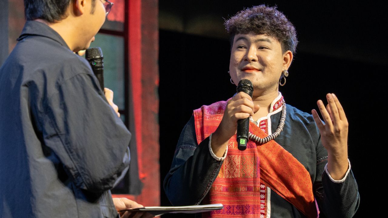 ครูคิม : น้องมีนเก่งมาก เพราะเขาต้องไปฝึกพูดภาษาภูไทด้วย มีแม่หมอโอปอสอนรำ สอนทำพิธีเหยา ส่วนครูคิมก็จะรับผิดชอบในการสอนพูดสำเนียงภูไทของสกลนคร สอนเรื่องการแต่งกาย การแสดงกลอนรำ ซึ่งกลอนในพิธีเหยาเป็นคำปลอบประโลม แสดงความนอบน้อมอ่อนโยน แต่ก็จะมีบางบทที่เข้มขลัง ความขลังของคำศัพท์ก็จะเพิ่มมากขึ้นตามไปด้วย