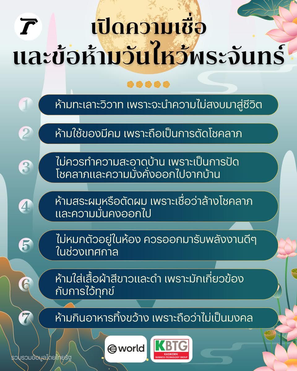 - ห้ามจ้องมองดวงจันทร์นานเกินไป ควรไหว้และขอพรพอประมาณ