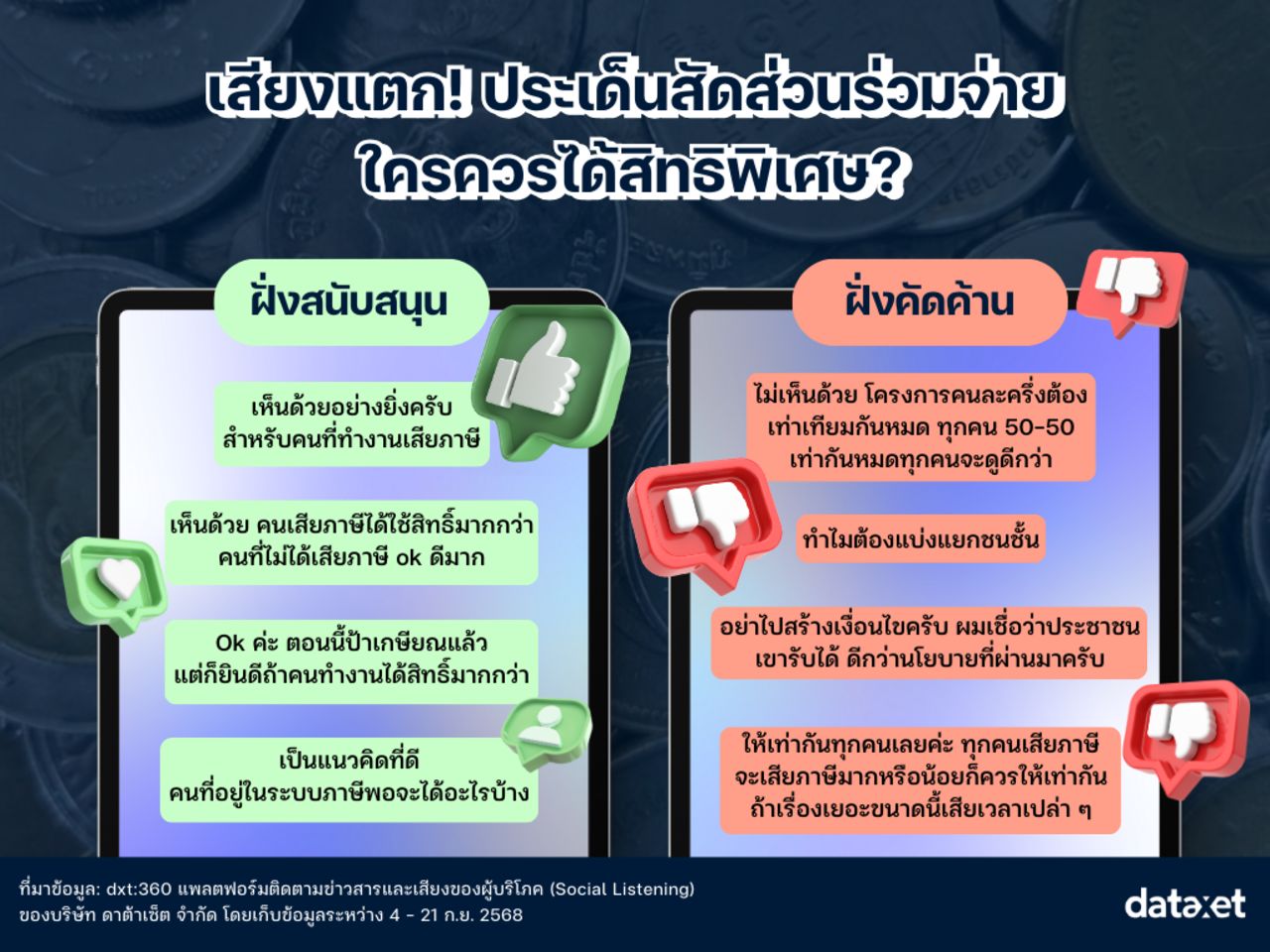 ข้อมูล: แพลตฟอร์ม dxt:360 (Social Listening and Media Monitoring Platform) โดย บริษัท ดาต้าเซ็ต จำกัด ระหว่างวันที่ 4 – 21 กันยายน 2568