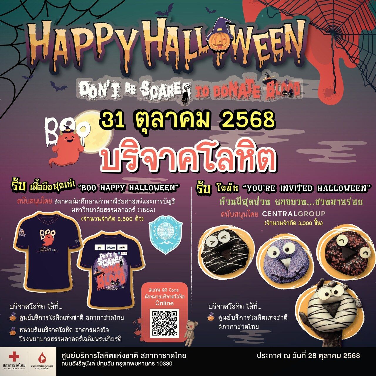 วันฮาโลวีน 31 ตุลาคมนี้ ใครกำลังมองหากิจกรรมเจ๋งๆ ลองเปลี่ยนบรรยากาศมาทำสิ่งดีๆ ที่มีความหมายกันดู เพราะปีนี้ ศูนย์บริการโลหิตแห่งชาติ สภากาชาดไทย ได้จัดกิจกรรมชวนทุกคนมาสลัดความกลัว แล้วมาเป็นผู้ให้ในแคมเปญสุดเก๋ DON'T BE SCARED TO DONATE BLOOD 31 ตุลาคม 2568 นี้ อย่ากลัวที่จะบริจาคโลหิต
