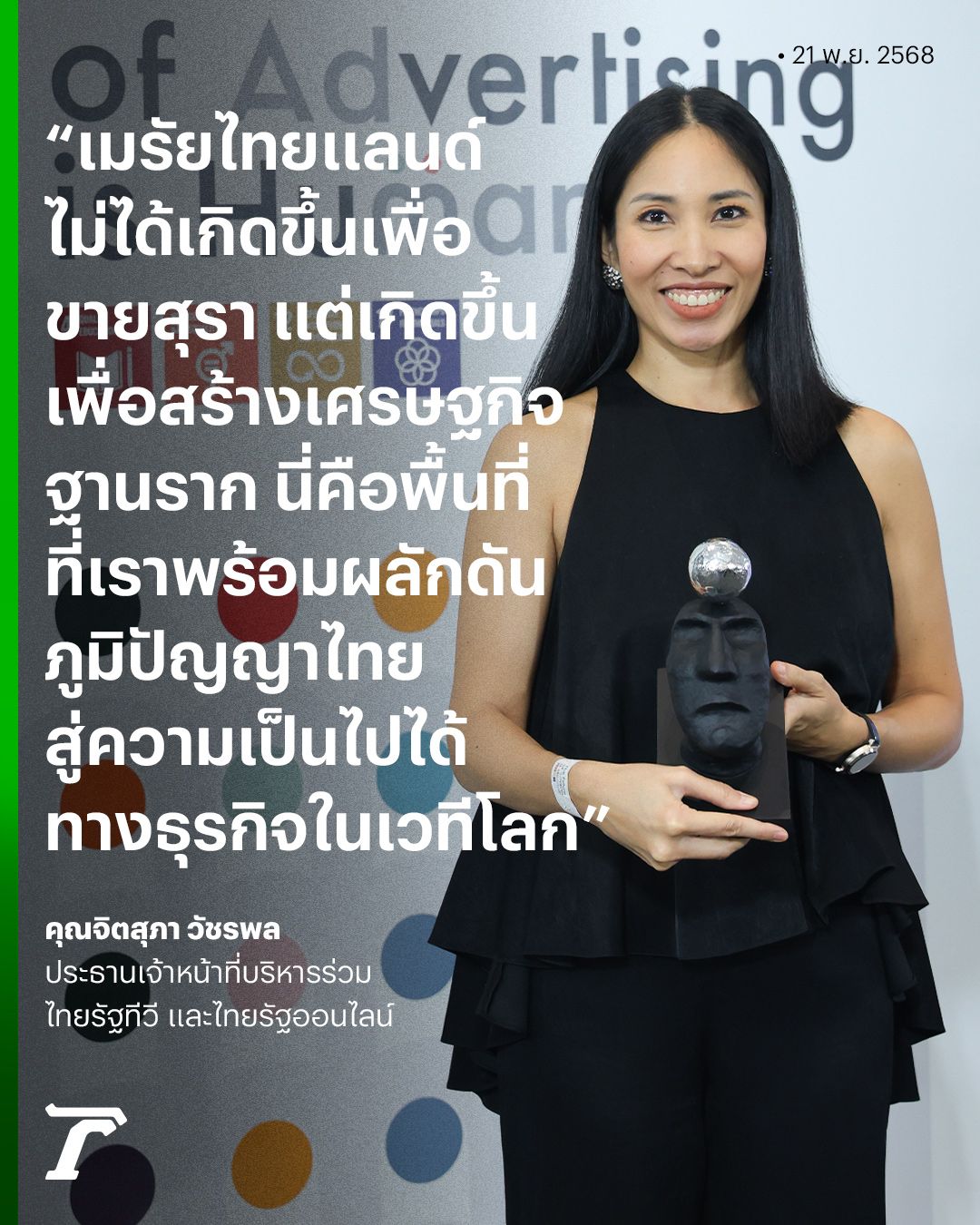 ความมุ่งมั่นในการสื่อสารที่ตรงไปตรงมา และเข้าถึงผู้คนนี้ ได้สร้างปรากฏการณ์สำคัญเป็นที่จดจำ โดยแคมเปญครีเอทีฟในครั้งนั้น ภายใต้ชื่อ “เมรัยไทยแลนด์ สุราเป็นเหตุ...” ได้รับการยอมรับในระดับประเทศ ด้วยการคว้ารางวัล Silver Award จากเวที Adman Awards & Symposium 2025 ในหมวด Radio & Audio (Script Writing) ที่ผ่านมาเมื่อวันที่ 20 พฤศจิกายน 2568 ซึ่งเป็นเครื่องพิสูจน์ถึงคุณค่าของงานสร้างสรรค์จาก Thairath Creative ที่กล้าพูดความจริง เพื่อสะท้อนปัญหา และตั้งคำถามถึงศักยภาพของสังคม