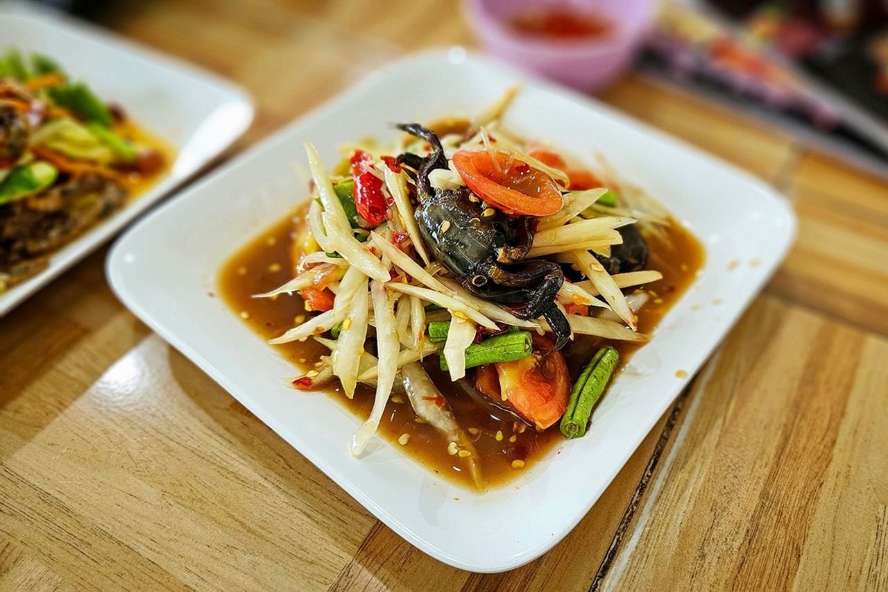 “ส้มตำ” ยังคงครองอันดับ 1 เมนูขายดีที่สุด ด้วยยอดสั่งรวมกว่า 16 ล้านจาน โดยเฉพาะส้มตำปูปลาร้า ตามมาด้วยข้าวมันไก่ (1.5 ล้านจาน) และลาบหมู (1 ล้านจาน)