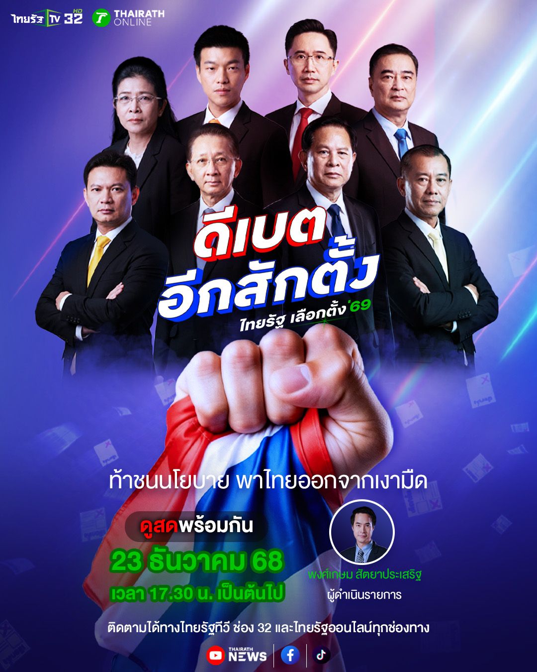 ทั้งนี้ เวทีไทยรัฐดีเบต ศึกเลือกตั้ง 2569 ถือเป็นโอกาสสำคัญที่ประชาชนจะได้เห็นมุมมอง นโยบาย และวิสัยทัศน์ของแคนดิเดตนายกฯ จากหลากหลายพรรคการเมืองอย่างใกล้ชิด ก่อนตัดสินใจในวันเลือกตั้งจริง วันที่ 8 กุมภาพันธ์ 2569