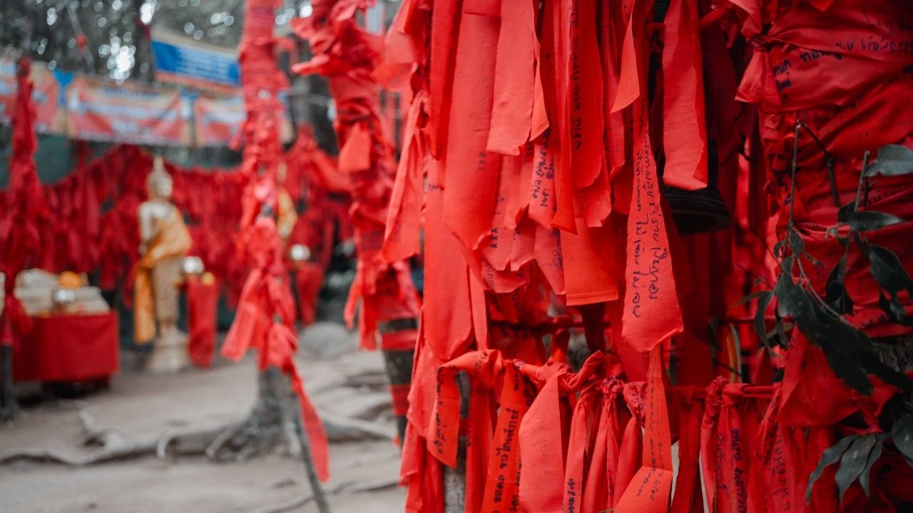 นอกจากบริเวณรอยพระบาทแล้ว ยังมี "ลานผ้าแดง" ที่เป็นเสมือนจุดไฮไลต์ในการขอพรอีกด้วย เดิมทีเส้นทางนี้จะมีการนำผ้าแดงมาผูก เพื่อเป็นสัญลักษณ์เตือนว่า พื้นที่เป็นจุดสูงและมีความลาดชัน แต่ปัจจุบันหลายคนนิยมเขียนคำอธิษฐานลงบนผ้าแดงเพื่อขอพรให้สมปรารถนาแทน