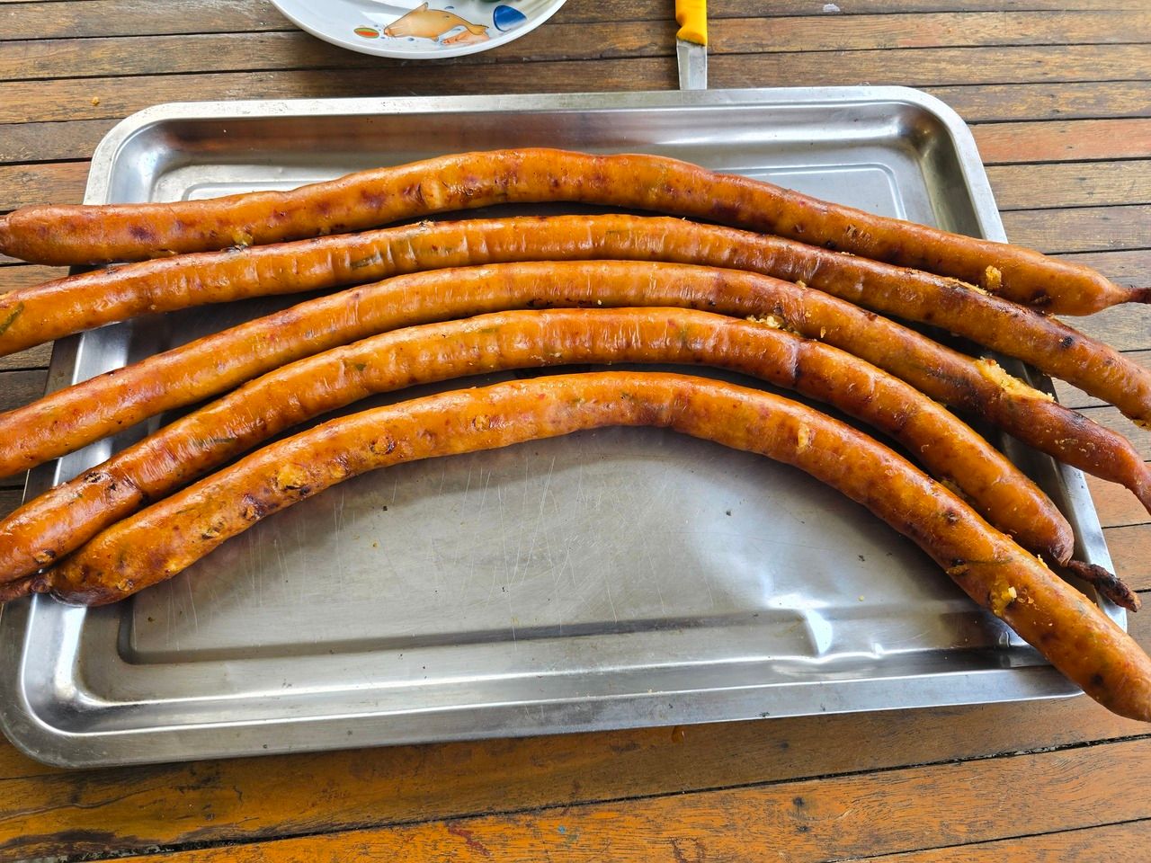 นอกจากนี้ยังใส่ใจเรื่องความสะอาดเป็นพิเศษ ด้วยการเช็ดปัดเศษผงไหม้หรือกากมะพร้าวออกจากตัวไส้กรอกอย่างหมดจด เพื่อให้ได้อาหารที่น่ารับประทานและปลอดภัยที่สุด