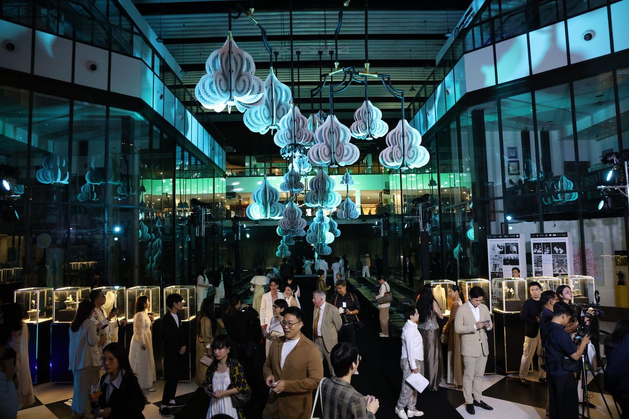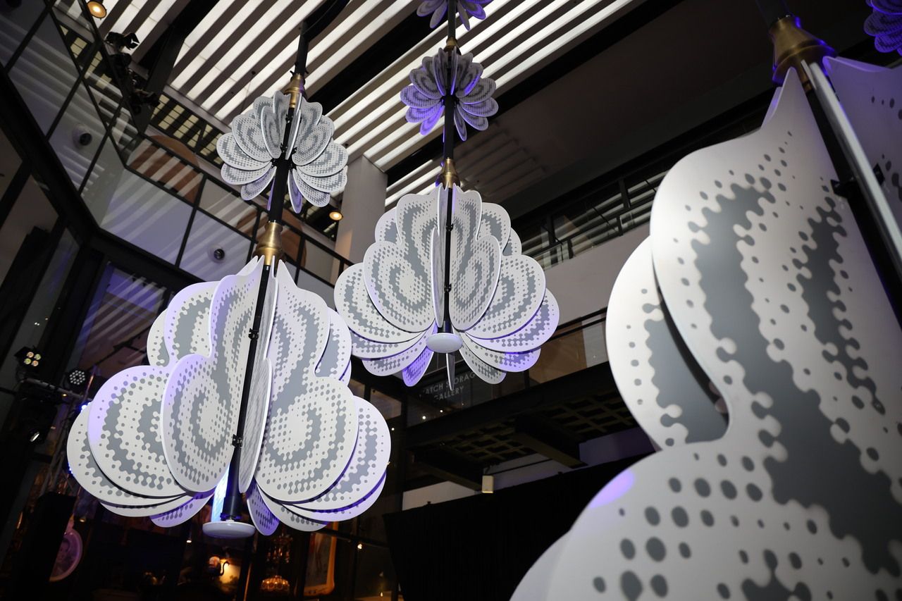 บรรยากาศภายในงาน A Constellation in Bloom ได้เปิดตัวโคมไฟแชนเดอเลียร์ดอกรักสุดอลังการนี้เต็มไปด้วยความหรูหรา ภายใต้เดรสโค้ดสีขาวและทอง ขับกล่อมด้วยดนตรีสดที่มีกลิ่นอายเพลงไทยยุคคลาสสิกร่วมสมัย และโชว์พิเศษจากแก้ม วิชญาณี เปียกลิ่น