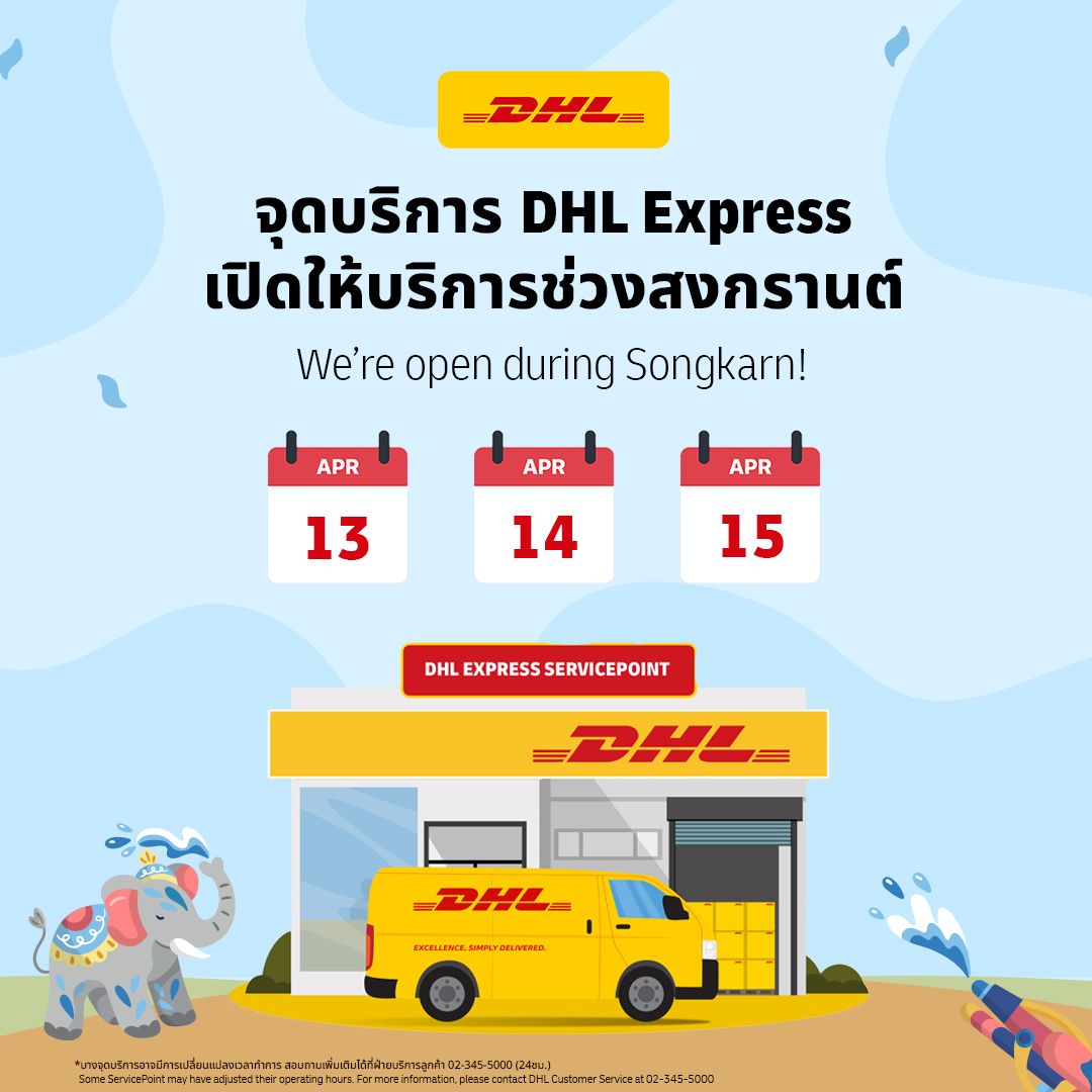 DHL Express ยังคงให้บริการส่งของระหว่างประเทศในช่วงสงกรานต์ แต่มีการปรับเวลาทำการและปิดบางสาขา
