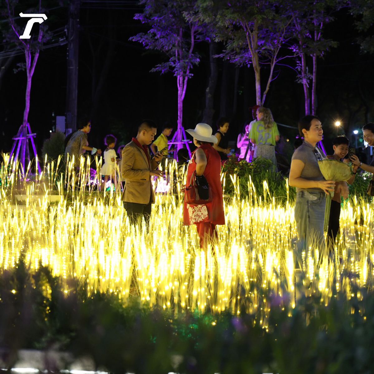 บรรยากาศภายในงานเต็มไปด้วยรอยยิ้มของผู้คนที่ตั้งใจเดินทางมาชมแสงสี ไปจนถึงกลุ่มนักวิ่ง และผู้ที่มาออกกำลังกายในช่วงเย็น ก็ต่างแวะหยุดพักเพื่อถ่ายรูปและซึมซับความสวยงามกันอย่างรื่นเริงใจ