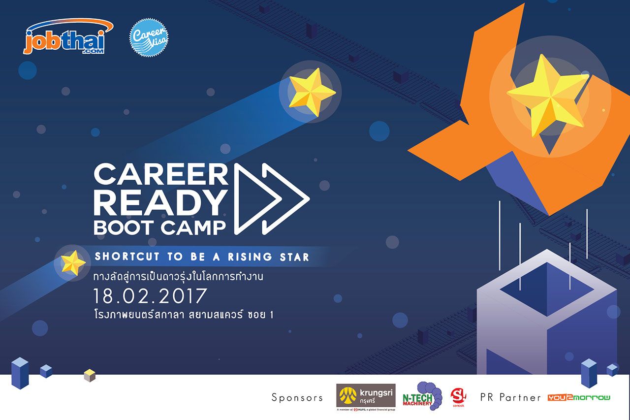 จ๊อบไทยดอมคอม ร่วมกับแคเรียร์วีซ่า ประเทศไทย ชวนนิสิต นักศึกษา เข้าร่วมกิจกรรม Career Ready Boot Camp ในหัวข้อ "ทางลัดสู่การเป็นดาวรุ่งในโลกการทำงาน" ร่วมรับฟัง แลกเปลี่ยนประสบการณ์ และทำความรู้จักกับ “ดาวรุ่ง” ผ่านเรื่องราวของผู้บริหารจากองค์กรชั้นนำของไทย พร้อมพบเวิร์กช็อปเจาะลึกทักษะสัมภาษณ์งานอย่างมืออาชีพ เทคนิคค้นหาอาชีพที่เหมาะสมกับตนเอง และการฝึกบุคลิกภาพโดยสถาบันพัฒนาบุคลิกภาพชั้นนำ ปิดท้ายด้วยกิจกรรม Star Network ที่เปิดโอกาสให้ถามตอบทุกข้อสงสัยเกี่ยวกับอาชีพที่สนใจ ทั้งนี้ กิจกรรมจัดขึ้นในวันเสาร์ที่ 18 กุมภาพันธ์ 2560 เวลา 09.00-17.30 น. ณ โรงภาพยนตร์สกาลา สยามสแควร์ ซอย 1 สามารถลงทะเบียนเข้าร่วมงานได้ฟรี! HYPERLINK "http://www.jobthai.com/careerreadybootcamp" www.jobthai.com/careerreadybootcamp (รับจำนวนจำกัด) สอบถามรายละเอียดเพิ่มเติม โทรศัพท์ 02-353-6999 ต่อ 2204