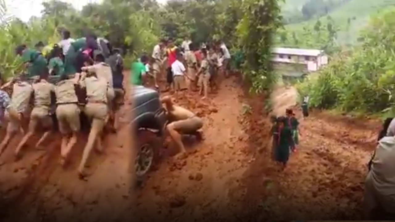 หลังจากถนนดินแดงดังกล่าว กลายเป็นขี้โคลนเละเทะ เพราะสายฝนที่เพิ่งหยุดตกไป ซึ่งนักเรียนตัวน้อยๆ ก็ไม่รอช้า ไม่กลัวชุดเลอะ ขนกันมาช่วยกันคนละไม้คนละมือ ทั้งลากจูง เข็นท้ายรถกระบะ เอาหินโรยถนน คอยเอาไม้หนุนล้อ รวมไปถึงกระโดดเพิ่มน้ำหนักอยู่บนกระบะท้ายด้วย