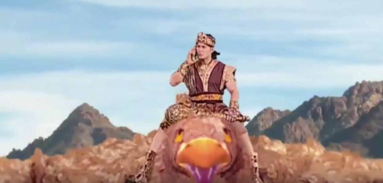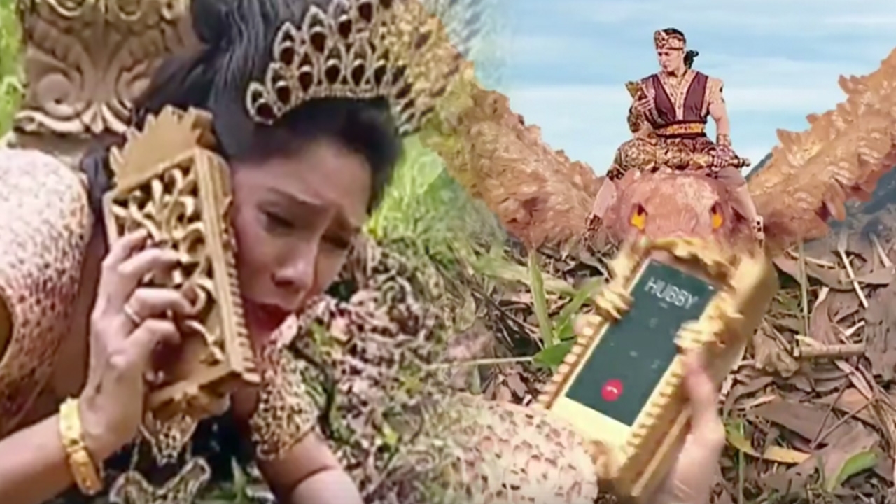 โดยตอนนี้เป็นตอนที่ หญิงสาวใส่ชุดสีทองประดับประดาไปด้วยเครื่องหัวถูกทำร้ายจนบาดเจ็บและต้องการคนช่วยเหลือ เลยหยิบโทรศัพท์ ซึ่งดูดีๆ เป็นยี่ห้อ iPhone (ไอโฟน) พร้อมกับใส่เคสสีน้ำตาลอันใหญ่เบ้ง โทรหาสามีของเธอ ซึ่งกำลังขี่พญาครุฑอยู่ท่ามกลางเวหา เมื่อสามีของเธอได้ยินเสียงโทรศัพท์ ก็หยิบมารับด้วยสีหน้าขึงขัง จากนั้นรีบมาช่วยเธอทันที ตามที่หญิงในซีรีส์แชร์โลเกชั่นไปให้ บอกเลยว่าทำเอาโซเชียลสะเทือนขำกันจนท้องแข็ง เมื่อเจอคลิปซีรีส์ดังกล่าว เพราะในยุคที่มีพญาครุฑก็มีโทรศัพท์ยี่ห้อไอโฟนด้วยจริงหรือ...