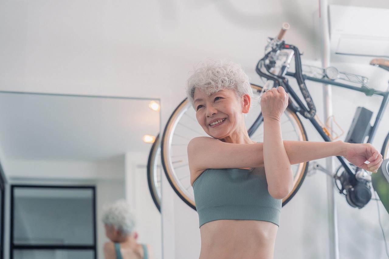 - ควรเริ่มจากการยืดกล้ามเนื้อและอบอุ่นร่างกายก่อนออกกำลังกายทุกครั้ง เพราะเมื่อเข้าสู่วัยสูงอายุ ร่างกายจะเริ่มเสื่อมสภาพลงทำให้การออกแรงมากๆ เป็นเรื่องยากและก่อให้เกิดอาการบาดเจ็บของกล้ามเนื้อได้