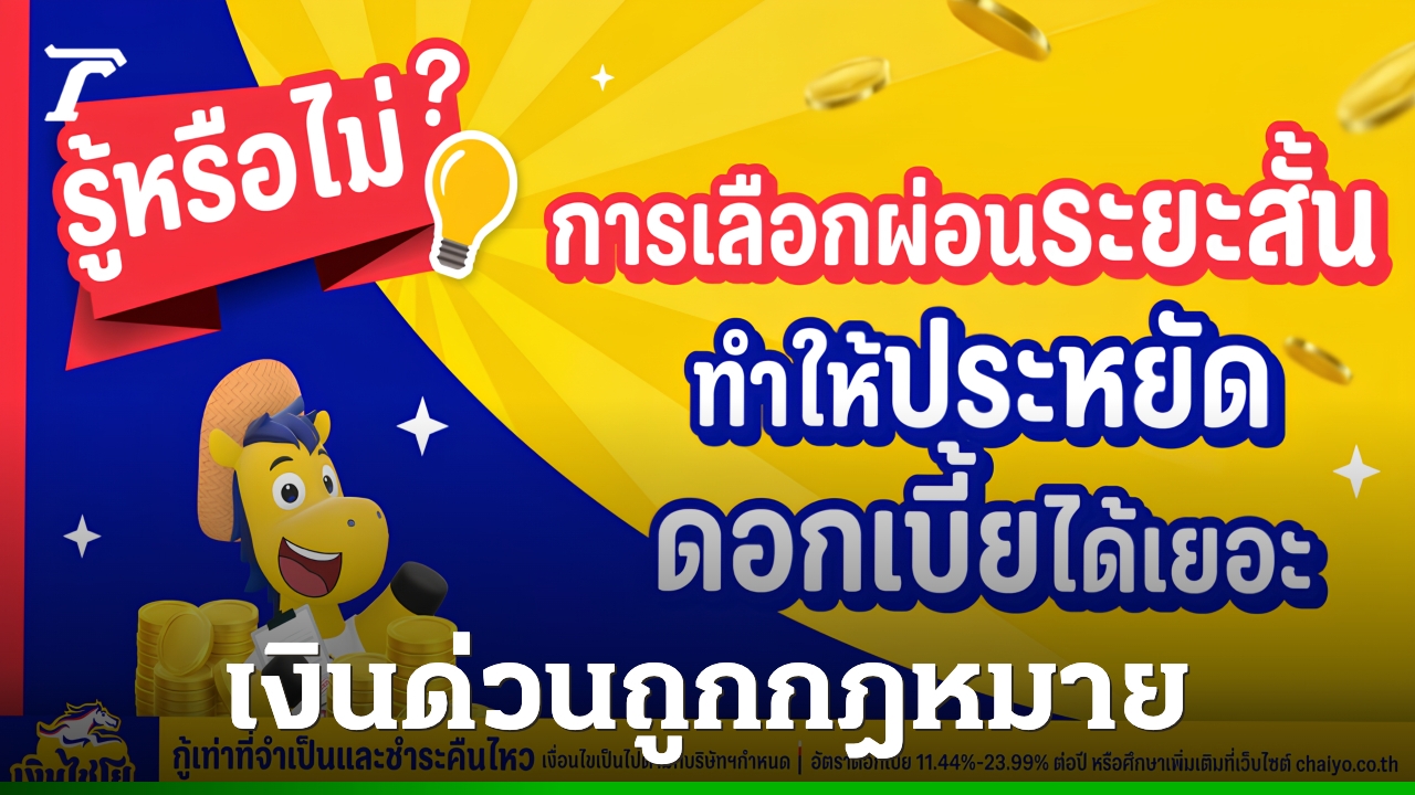 การกู้เงินถูกกฎหมายที่มีการคิดดอกเบี้ยแบบลดต้นลดดอก แม้ "การเลือกผ่อนระยะสั้น" จะทำให้ต้องจ่ายค่างวดในแต่ละเดือนสูงมากกว่าปกติ แต่ในทางกลับกันจะช่วยให้ผู้กู้ประหยัดและลดภาระดอกเบี้ยได้มากขึ้น เมื่อเทียบกับการผ่อนชำระระยะยาว ทั้งนี้ จะต้องไม่ลืมเลือกระยะเวลาผ่อนที่มั่นใจว่าตนเองจ่ายไหว เพราะหากตึงมือเกินไป อาจเสี่ยงกลายเป็นหนี้เสียได้