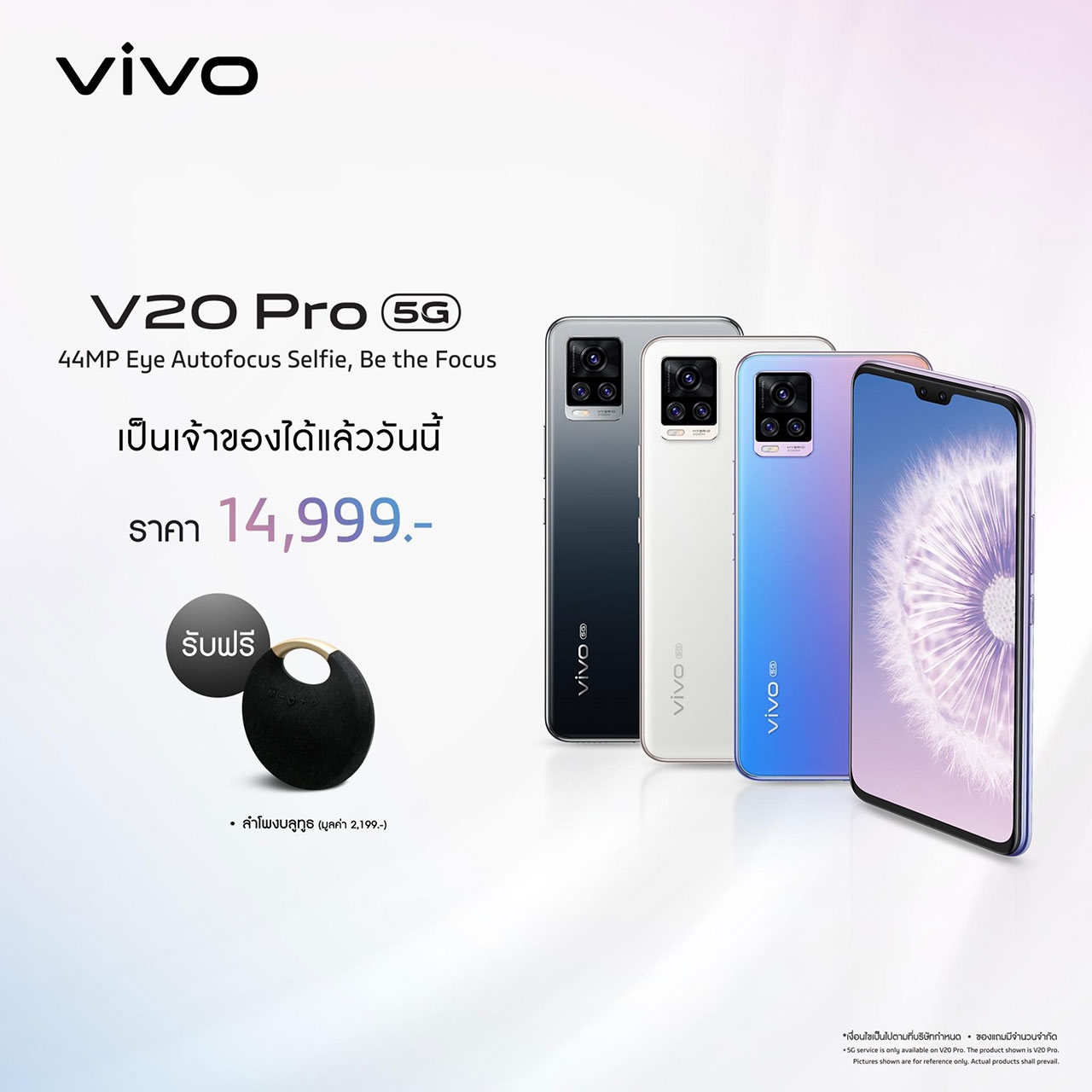 สามารถเป็นเจ้าของ Vivo V20 Pro 5G ได้แล้ววันนี้ในราคาเพียง 14,999 บาท ที่ Vivo Brand Shop ทุกสาขา และตัวแทนจำหน่ายทั่วประเทศ
