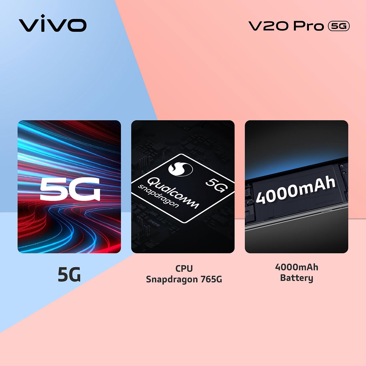 ทางด้านของสเปก Vivo V20 Pro 5G มาพร้อมขุมพลังที่คุ้มค่าตัว สามารถตอบโจทย์ทุกการใช้งานอย่างลื่นไหลด้วยหน่วยประมวลผล 8 แกน Qualcomm Snapdragon 765G โดยมี RAM มากถึง 8GB และมี ROM 128GB ทำงานด้วยระบบปฏิบัติการ Android 11 และครอบทับด้วย Funtouch OS 11 ที่ถูกปรับแต่งมาให้สะดวกรวดเร็วกว่าเดิม