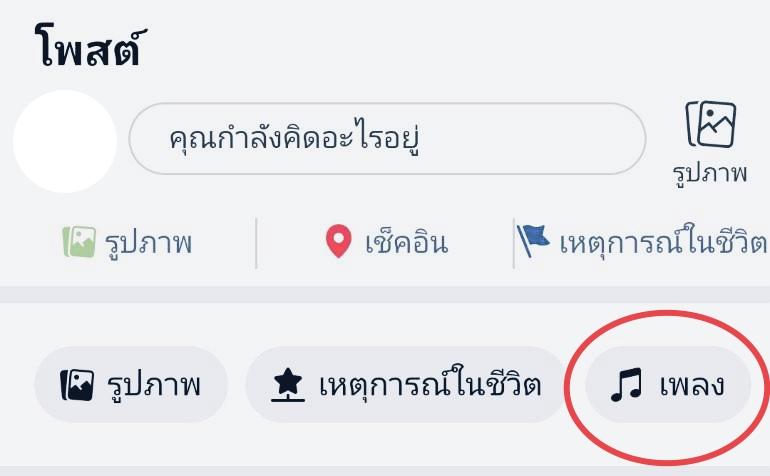 2. เลื่อนลงมาที่ช่องสำหรับโพสต์สเตตัส เลือกช่องที่เขียนว่า "เพลง"