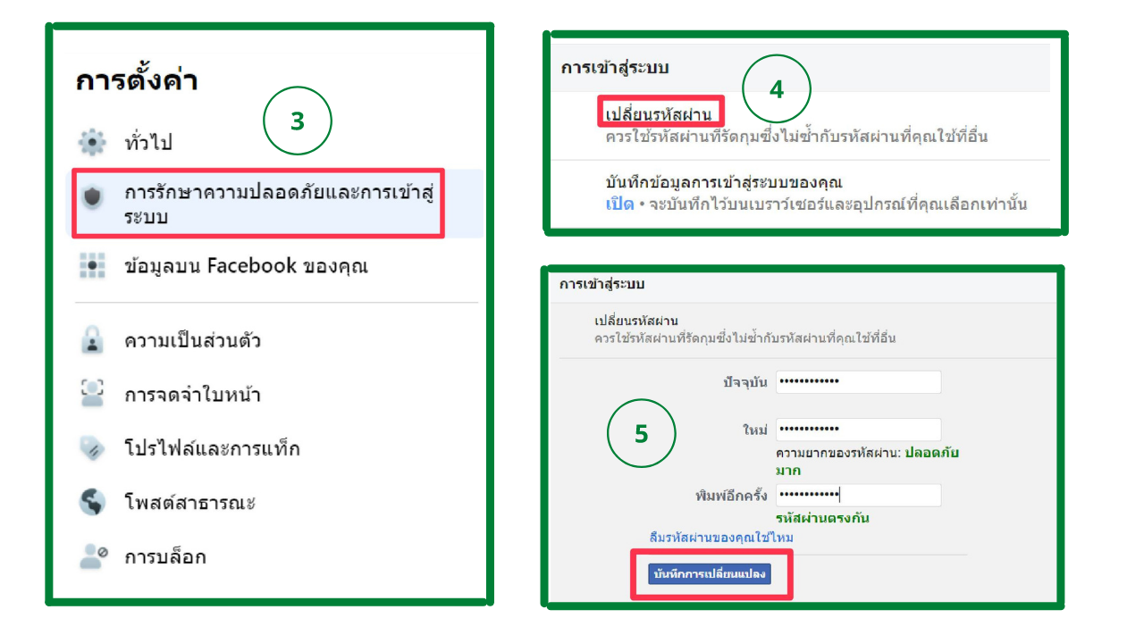 วิธีตั้งรหัสผ่าน (Password) แนะนำให้ใช้รหัสผ่านที่มีตัวอักษรภาษาอังกฤษ ผสมตัวเลข เผื่อให้คาดเดายาก เป็นการรักษาความปลอดภัยให้บัญชีของคุณ > หลังจากนั้นคลิก บันทึกการเปลี่ยนแปลง เป็นอันเสร็จสิ้นการเปลี่ยนรหัสเฟซบุ๊ก