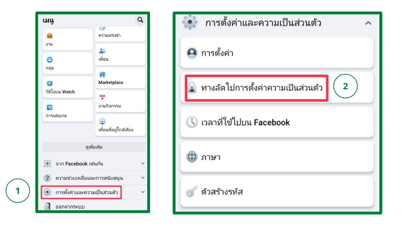 2. เลือกทางลัดไปการตั้งค่าความเป็นส่วนตัว