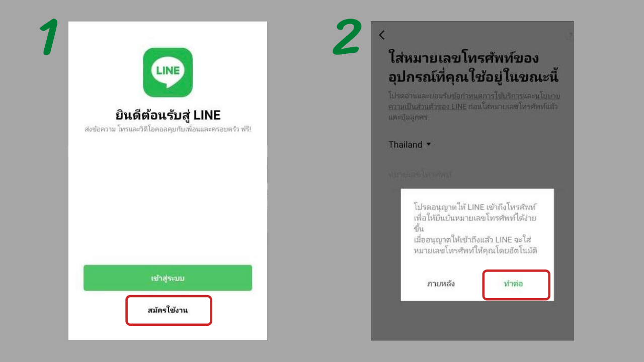 หลังจากที่ลบบัญชีไลน์เดิมเรียบร้อยแล้ว ก่อนจะได้เปลี่ยนไอดีไลน์ที่ต้องการ ต้องเริ่มสมัครใช้งานบัญชีใหม่ก่อน โดยเข้าไปที่แอปพลิเคชัน Line แล้วทำตามขั้นตอนต่อไปนี้