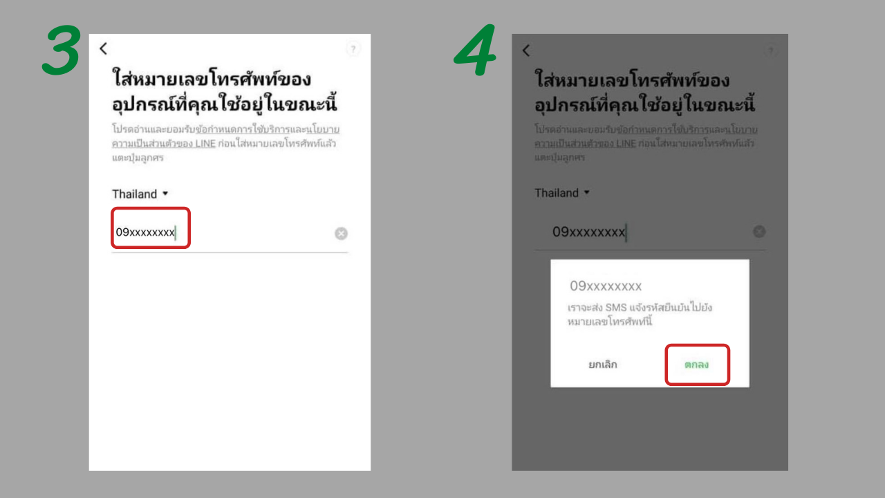 3. กรอกหมายเลขโทรศัพท์มือถือเพื่อผูกกับบัญชีไลน์
