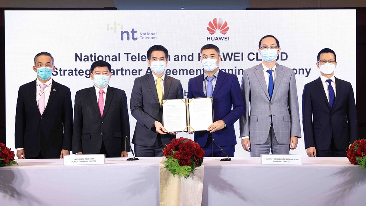 (ในภาพ - ดร.วงกต วิจักขณ์สังสิทธิ์ (ที่ 3 จากซ้าย) รองกรรมการผู้จัดการใหญ่สายงานดิจิทัล บริษัท โทรคมนาคมแห่งชาติ จำกัด (มหาชน) และอลัน เหลียว (ที่ 4 จากซ้าย) รองประธานกรรมการบริหาร บริษัท หัวเว่ย เทคโนโลยี่ (ประเทศไทย) จำกัด ร่วมลงนามในบันทึกข้อตกลงด้านการให้บริการเทคโนโลยีคลาวด์ โดยมีคุณอำนวย ปรีมนวงศ์ (ที่ 2 จากซ้าย) กรรมการบริหาร, พันเอก สรรพชัย หุวะนันทน์ (ซ้ายสุด) กรรมการบริหาร บริษัท โทรคมนาคมแห่งชาติ จำกัด (มหาชน), เดนนิส เสี่ยว (ที่ 5 จากซ้าย) รองประธานกรรมการบริษัท หัวเว่ย ภูมิภาคเอเชียแปซิฟิก และคุณอาเบล เติ้ง (ขวาสุด) ประธานกรรมการบริหาร บริษัท หัวเว่ย เทคโนโลยี่ (ประเทศไทย) จำกัด เป็นสักขีพยาน)