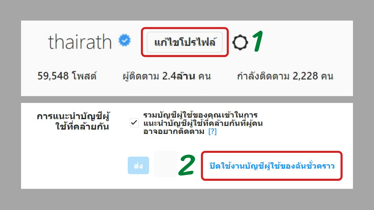 1. ล็อกอินบัญชีไอจี แล้วเข้าไปที่หน้าโปรไฟล์ คลิก "แก้ไขโปรไฟล์"