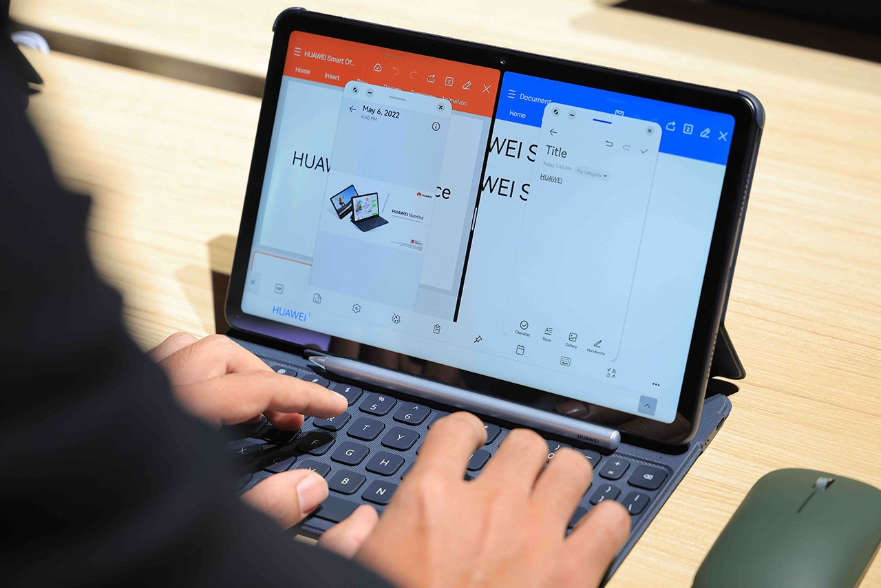 หนึ่งในคุณสมบัติสำคัญที่ช่วยให้เราสามารถใช้แท็บเล็ต HUAWEI MatePad 10.4-inch 2022 ได้อย่างราบรื่นคือระบบปฏิบัติการรุ่นใหม่ล่าสุดและซอฟต์แวร์สารพัดประโยชน์ซึ่งถูกสร้างสรรค์มาเพื่อยกระดับประสบการณ์การใช้งานขึ้นไปอีกขั้นอย่าง HarmonyOS 2.0 ซึ่งพก User Interface แบบใหม่มาอำนวยความสะดวกในการเปิดใช้งานแอปพลิเคชันต่างๆ ได้อย่างรวดเร็ว ทั้งยังสามารถจัดหน้าเดสก์ท็อปได้ตามสไตล์ของผู้ใช้งาน และสามารถเปิดใช้งานแอปฯ พร้อมกันได้สูงสุดถึง 4 แอปพลิเคชัน 4 หน้าต่าง ใช้งาน WPS Office, Microsoft PowerPoint และ Microsoft Word พร้อมกันได้สบายๆ แถมยังมีฟีเจอร์ App Multiplier ที่สามารถเปิดแอปฯ เดียวกันได้แบบสองหน้าต่าง ดูข้อมูลได้อย่างครอบคลุมและสะดวกสบายในจอเดียว ยิ่งถ้าใช้งานคู่กับอุปกรณ์เสริมอย่างเมาส์บลูทูธก็จะสามารถดูหน้าต่างพรีวิวของแอปฯ ก่อนใช้งานได้เมื่อนำเคอร์เซอร์เมาส์ไปค้างไว้ที่แอปฯ และหากวางเคอร์เซอร์เมาส์ค้างไว้ที่แอปฯ บริเวณ Tool Bar ด้านล่างก็สามารถเช็กได้ว่ามีแอปฯ ใดเปิดใช้งานไว้ก่อนหน้านี้ และสามารถคลิกเปิดใช้งานได้ทันที หรือหากใช้งานร่วมกับ HUAWEI Smart Keyboard ก็จะยิ่งสะดวกสบายไปกับคีย์ลัดมากมาย เช่น Ctrl+C และ Ctrl+V บอกเลยว่าฟังก์ชันจัดเต็มและให้ความรู้สึกเสมือนใช้งานแบบเดียวกับในโน้ตบุ๊ก ทั้งยังช่วยให้เคลียร์งานได้เร็วและง่ายขึ้นอีกด้วย