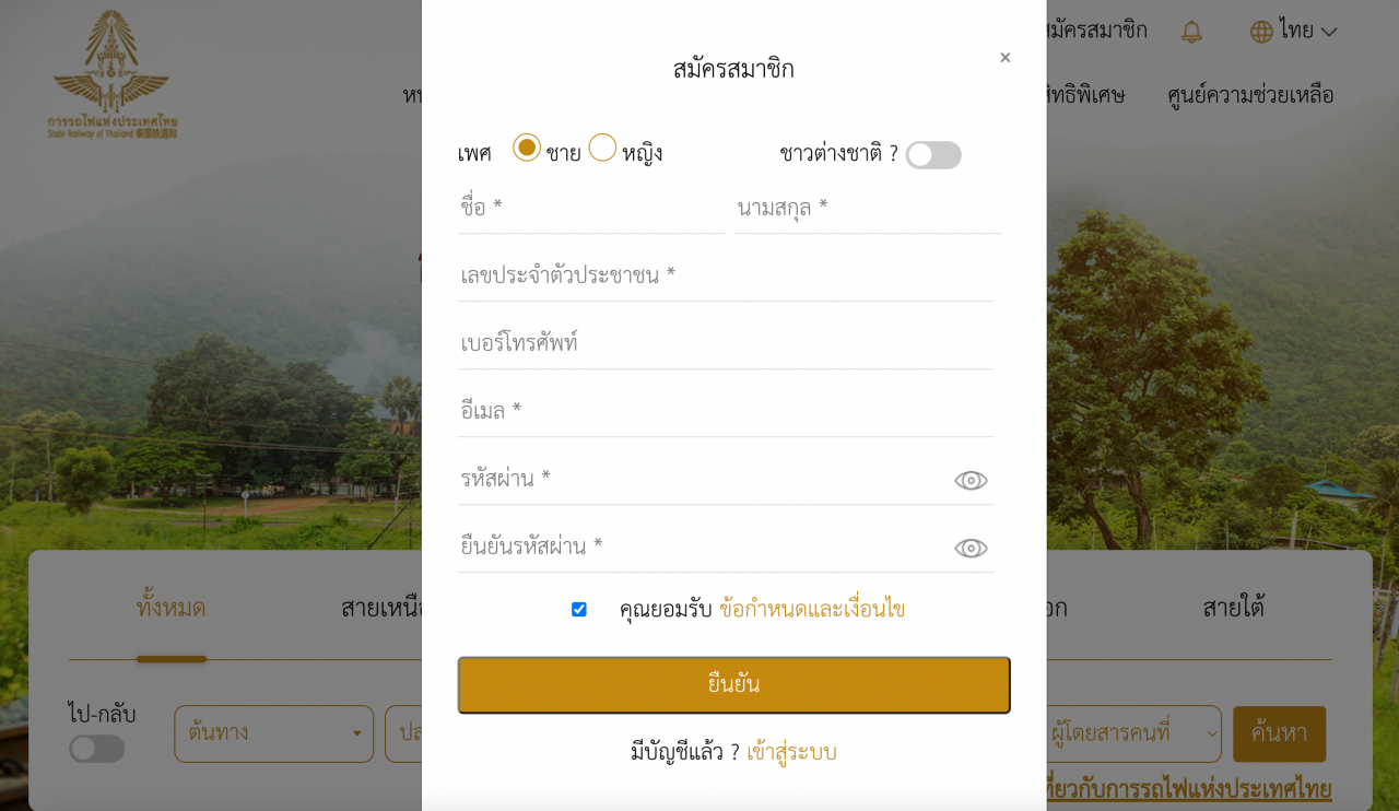 3. สมัครสมาชิกเว็บไซต์การรถไฟแห่งประเทศไทย