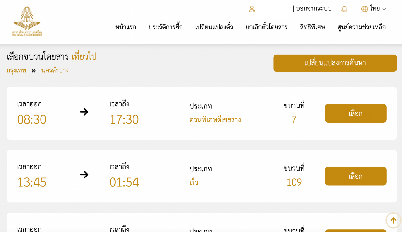 หลังจากกดยืนยันสมัครสมาชิกแล้ว ให้กลับเข้ามา “เข้าสู่ระบบ” ใหม่อีกครั้ง ด้วยการกรอกรหัสผ่าน หลังจากนั้นก็เลือกขบวนโดยสารได้ทั้งขาไป และขากลับ เลือกเวลา และเลือกที่นั่งได้