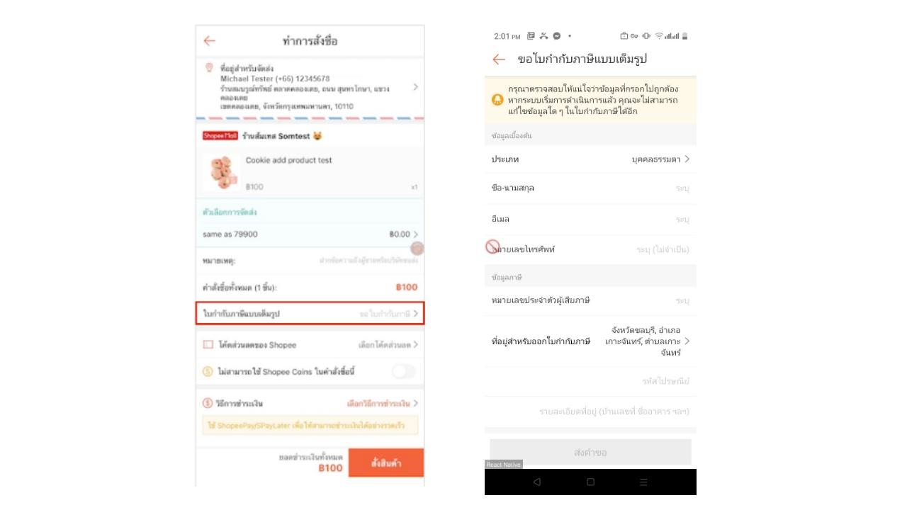 Shopee ได้เปิดให้ร้านค้าออกแบบฟอร์มเพื่อเปิดใช้งานฟีเจอร์ “ออกใบกำกับภาษี” ตั้งแต่ 16 พฤษภาคม พ.ศ. 2565 ที่ผ่านมา โดยร้านค้าที่สามารถเปิดใช้ฟีเจอร์นี้ได้ ต้องเป็นร้านค้าที่ทำการจดภาษีมูลค่าเพิ่มหรือมีสิทธิถูกต้องตามกฎหมายในการออกใบกำกับภาษีเต็มรูปแบบเท่านั้น