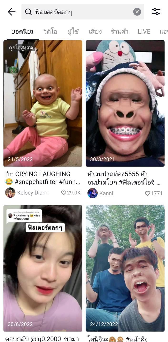 ฟิลเตอร์ชาเลนจ์ที่ใช้ฟิลเตอร์ตลกๆ มาทำให้ใบหน้าเปลี่ยนรูปทรงไป เช่น