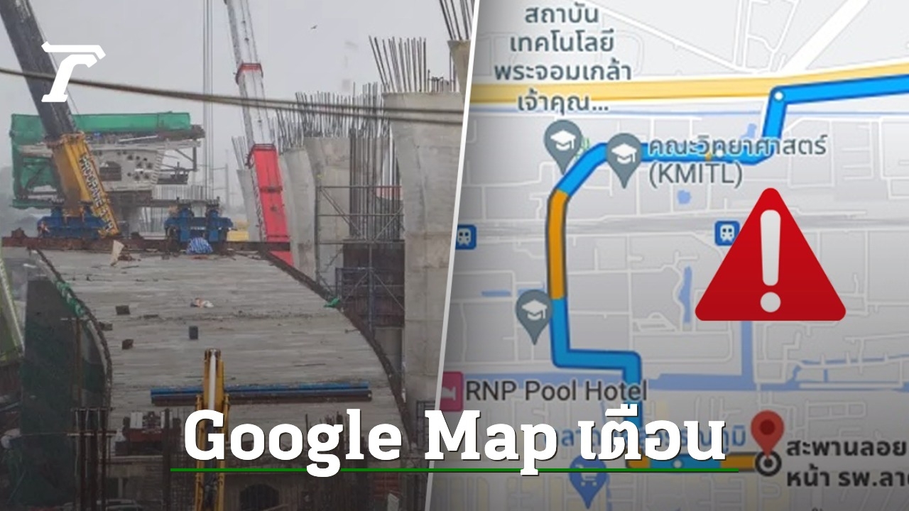 สะพานถล่มลาดกระบังอยู่ตรงไหน ใครที่ใช้เส้นทางถนนอ่อนนุช-ลาดกระบัง ต้องวางแผนการเดินทางเพื่อหลีกเลี่ยงเส้นทาง Google Map เพิ่มสัญลักษณ์เตือนถนนมีปัญหา เพื่อติดตามสถานการณ์เส้นทางใกล้สะพานถล่มลาดกระบังล่าสุด