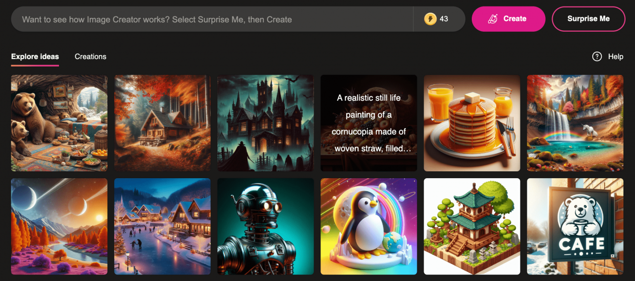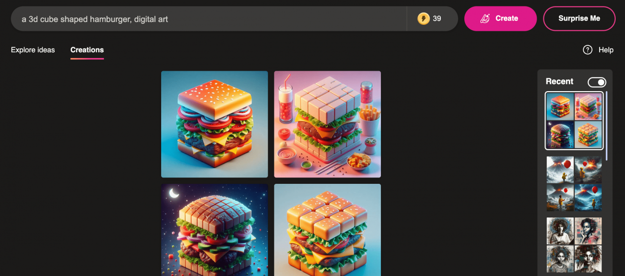 ทั้งนี้ นอกจากจะกดป้อนคำสั่งด้วยตนเองแล้ว ยังมีฟังก์ชัน “Surprise Me” โดยระบบจะสุ่มคำสั่งให้อัตโนมัติ ส่วนใครที่กำลังมองหาไอเดียใหม่ๆ ก็สามารถกดเลือก “Explore Ideas” เพื่อดูไอเดียภาพวาดสวยๆ พร้อมคำสั่งได้เช่นกัน