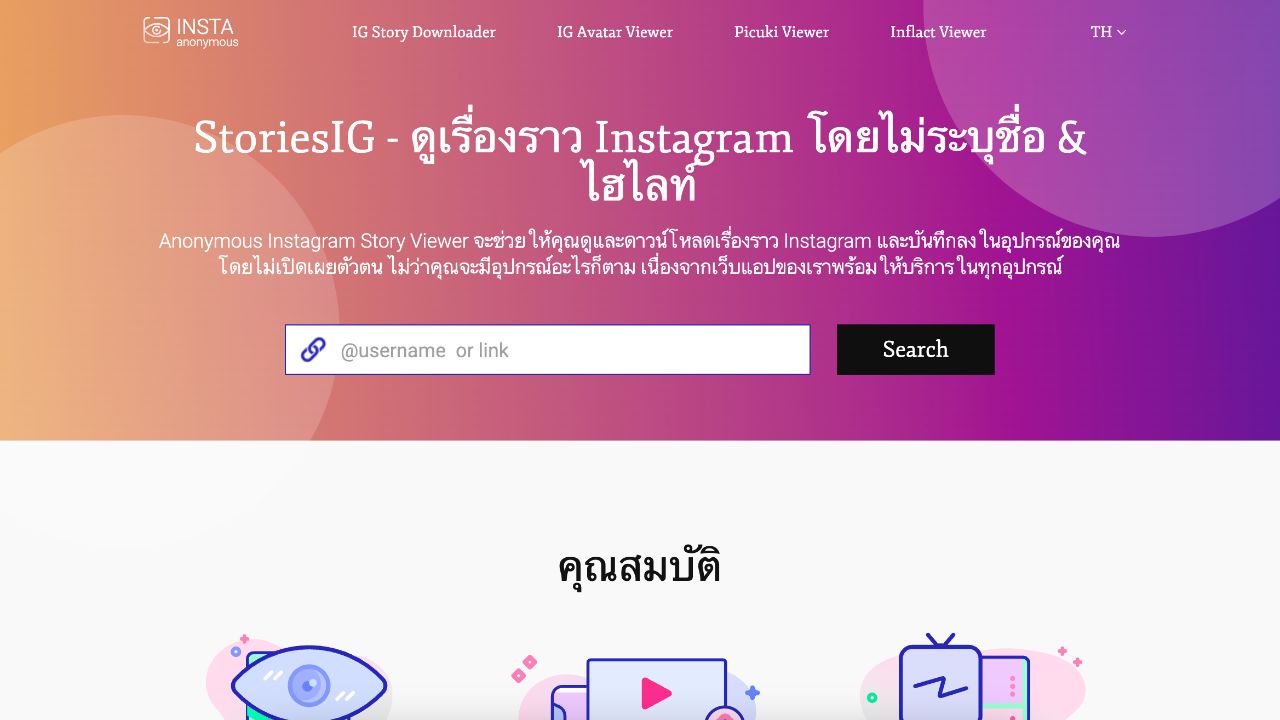 เว็บไซต์ StoriesIG มาพร้อมกับฟีเจอร์ “Viewer” ที่สามารถดูสตอรี่ไอจีได้ด้วยไม่เปิดเผยชื่อ อีกทั้งยังสามารถดาวน์โหลดวิดีโอได้อย่างไม่จำกัด ในขณะเดียวกันก็มีฟีเจอร์ “IGTV” ที่พร้อมให้ดาวน์โหลดวิดีโอยาว เพียงแค่ใส่ชื่อบัญชี หรือก๊อบปี้ลิงก์บัญชีมาใส่ในเว็บไซต์