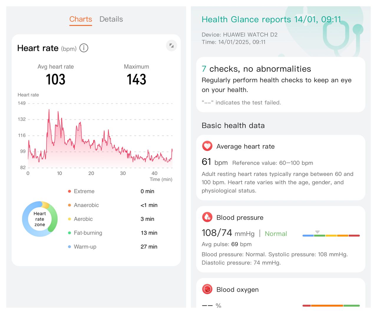 Huawei Watch D2 โดดเด่นเรื่องการวัดความดันโลหิต ซึ่งถือเป็นฟีเจอร์ที่หาได้ยากในสมาร์ทวอตช์ทั่วไป ผลการวัดมีความแม่นยำเมื่อเทียบกับเครื่องวัดความดันโลหิตมาตรฐาน อย่างไรก็ตาม การใช้งานจำเป็นต้องอยู่ในตำแหน่งที่ถูกต้องของข้อมือ มิฉะนั้นอาจทำให้ไม่สามารถวัดค่าได้อย่างแม่นยำ