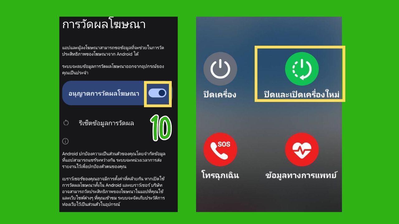 10. ให้กดเลือกทีละหัวข้อ เริ่มที่ "การวัดผลโฆษณา" แล้วเลื่อนสวิตช์ปิดย้อนกลับ
