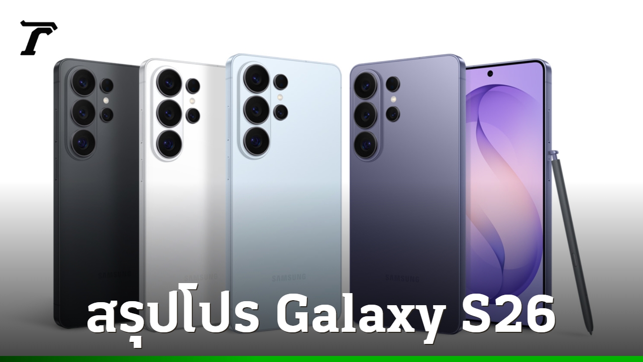ซัมซุงได้จัดงานอีเวนต์ Galaxy Unpacked 2026 ประกาศเปิดตัวสมาร์ทโฟนตระกูล Samsung Galaxy S26 เป็นที่เรียบร้อยแล้ว ซึ่งประกอบด้วย 3 รุ่นใหม่ล่าสุด Galaxy S26, Galaxy S26+ และ Galaxy S26 Ultra ซึ่งมีให้เลือก 4 สี ได้แก่ สีม่วง Cobalt Violet, สีฟ้า Sky Blue, สีขาว และสีดำ