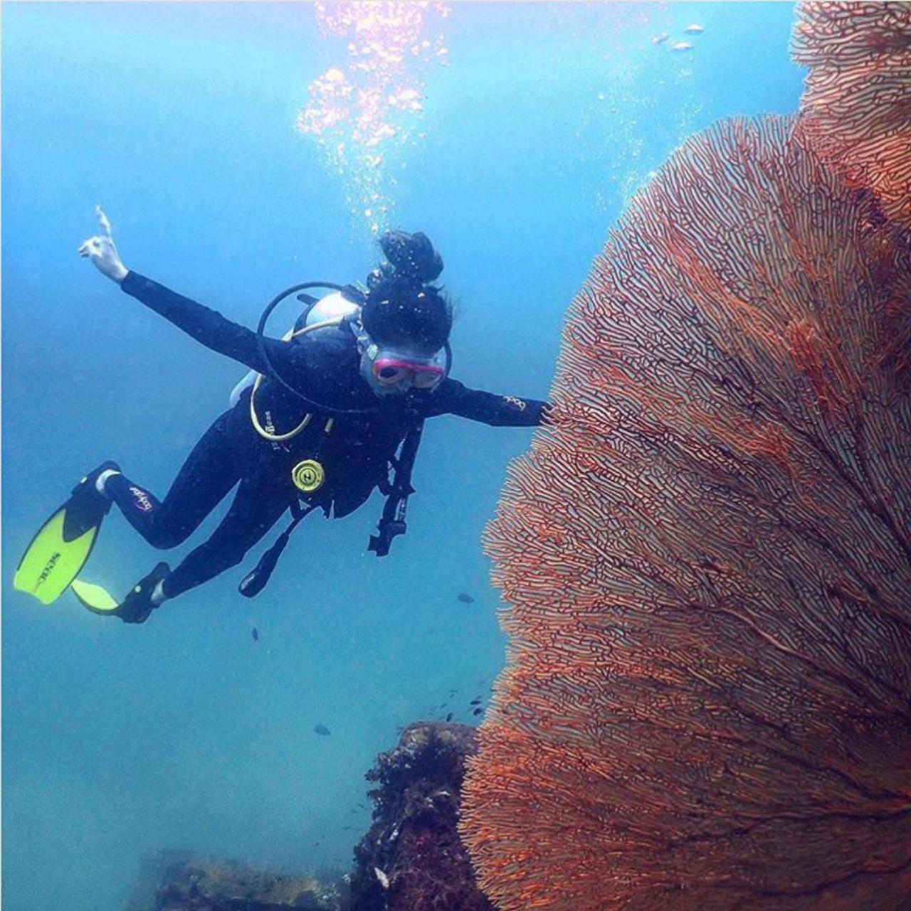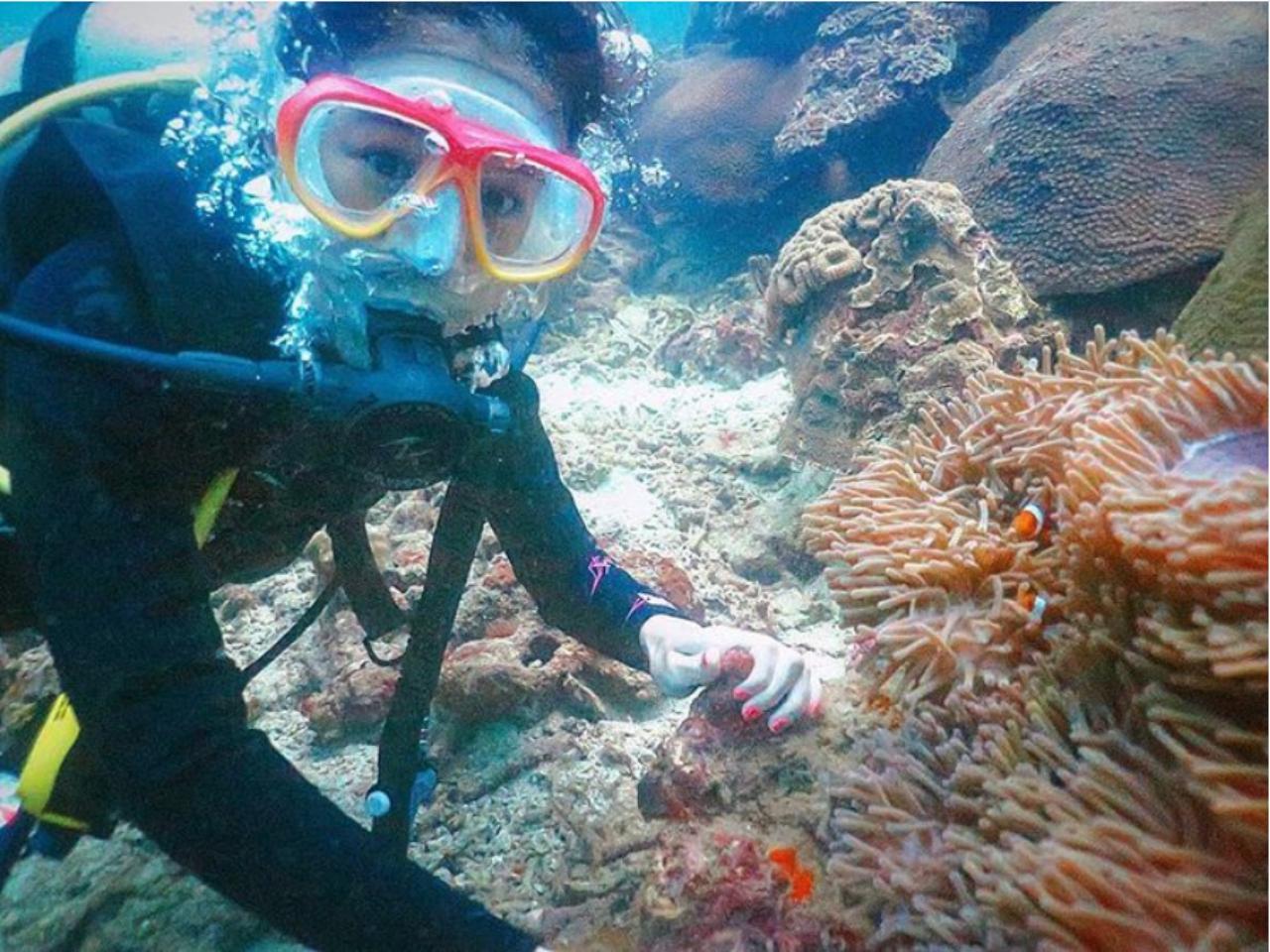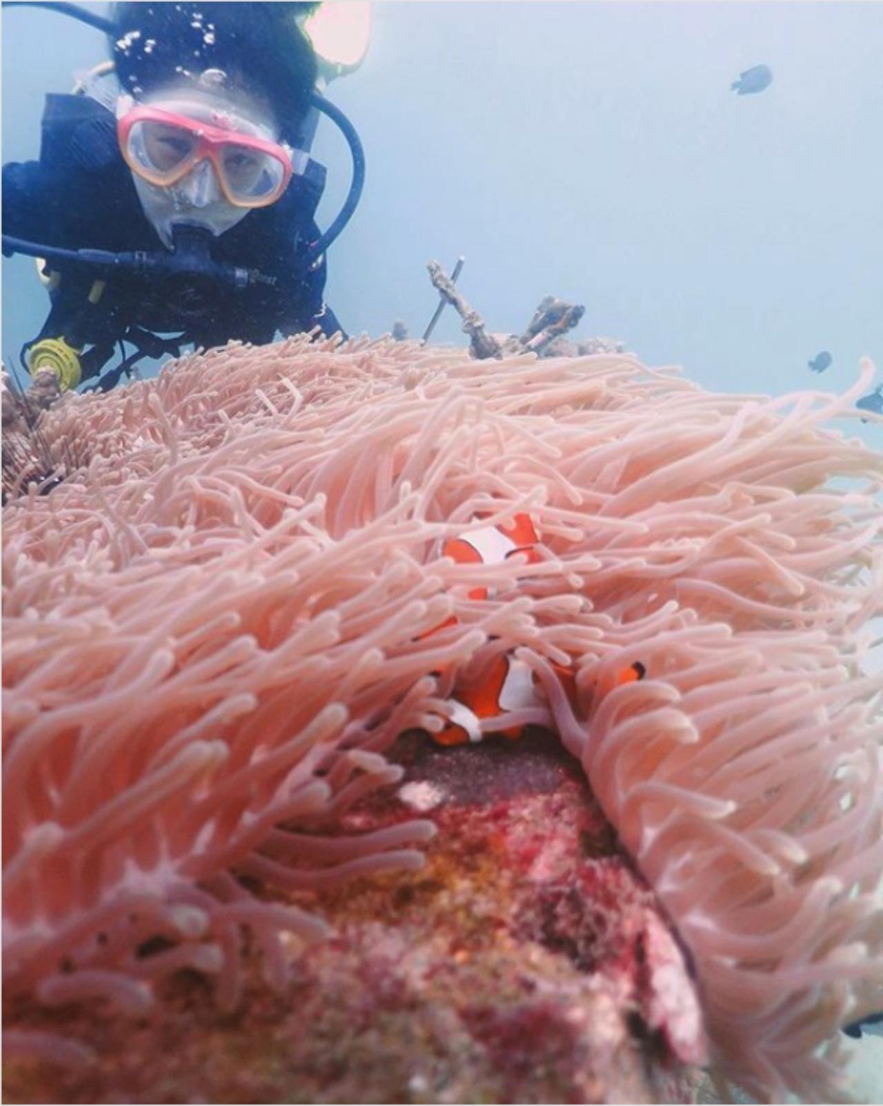 ทริปนี้สาวออมโชว์สกิลในการดำน้ำลึก พาไปชมโลกใต้ทะเลลึกสวยมาก เหมือนอยู่ในภาพยนตร์สารคดีทางทะเลยังไงยังงั้นเลย