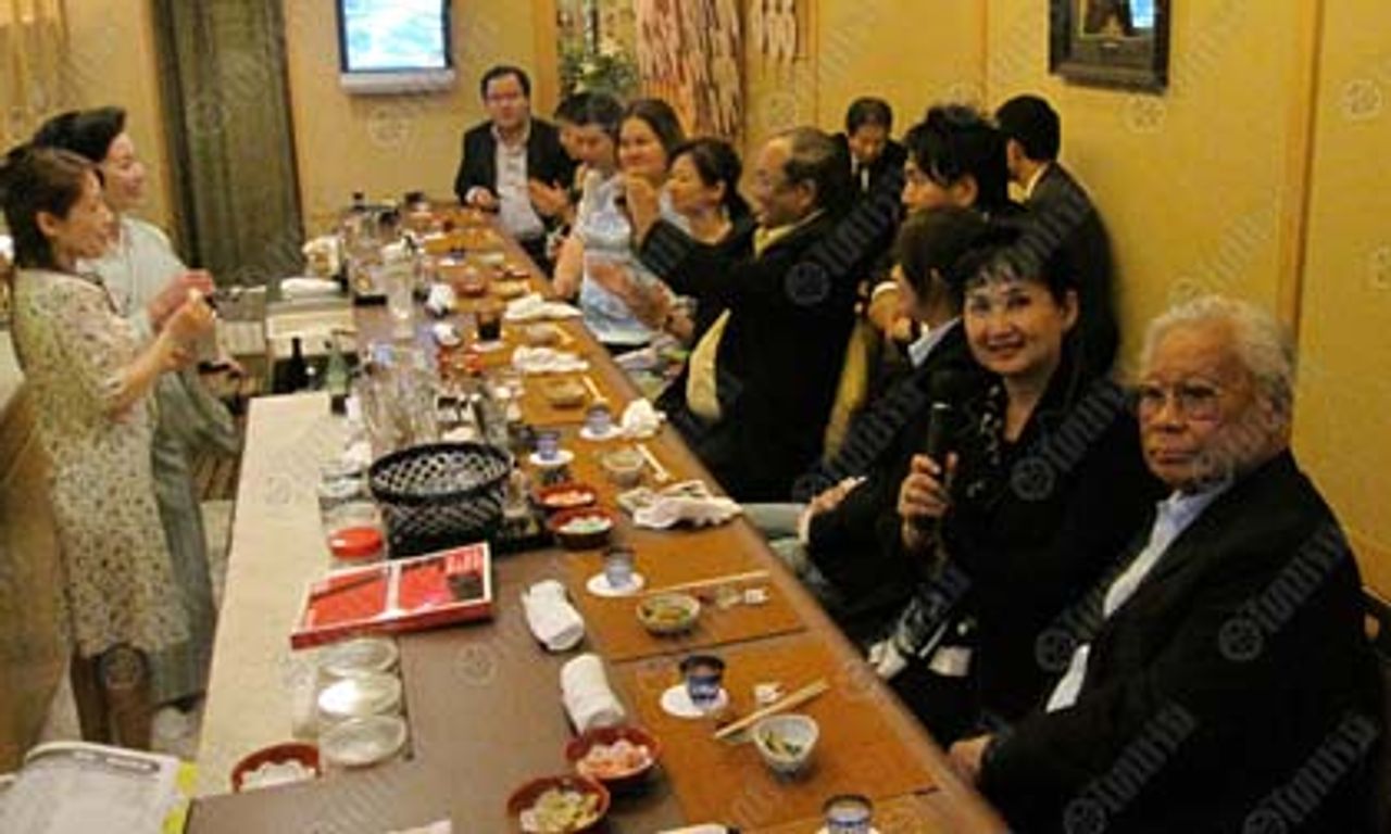 แต่ที่ประทับใจและเป็น ครั้งแรกในชีวิตของผมที่เดินทางมาญี่ปุ่นกว่า 40 ปีแล้วได้ไปร้องเพลงคาราโอเกะของแท้ของญี่ปุ่น เล่นเอาคณะของเราแย่งกันร้องเพลงแข่งกับประธานบริษัทซันคลอเรลล่า แต่สำหรับผมไม่สามารถร้องกับคาราโอเกะได้เพราะนอกจากจะไม่มีเพลงไทยแล้ว เพลงฝรั่งที่เขาร้องกันผมก็ไม่ถนัดจะร้องกับคาราโอเกะ จึงต้องร้องแบบสดๆ ไม่ต้องใช้ทำนอง โดยได้ร้องเพลงญี่ปุ่นเก่าสมัยสงครามซึ่งเป็นเพลงประจำตัวที่ผมร้องได้ชื่อ เพลงคุนิโนฮานะ แปลว่า ดอกไม้ของชาติ พอร้องจบประธานบริษัทฯ และมาม่าซังเจ้าของร้านอ้าปากค้าง ตะโกนโหวกเหวกปรบมือกันยกใหญ่ แล้วถามว่าร้องได้อย่างไร ไม่เคยได้ยินมาก่อน ทำไมออกเสียงชัดมาก และร้องเพราะกว่าคนญี่ปุ่นเสียอีก (จะเคยได้ยินได้อย่างไร ก็มันเป็นเพลงสมัยสงครามพวกนี้ยังไม่เกิดเลย) ทำเอาท่านประธานและมาม่าซังสาวสวยทั้งสามคนต้องรินสาเกดื่มเป็นการคารวะ 3 จอก