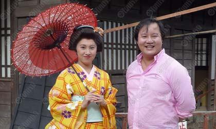 ผู้เขียนกับซามูไร ที่หมู่บ้านซามูไร.