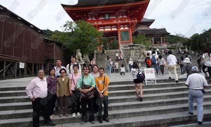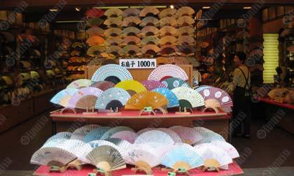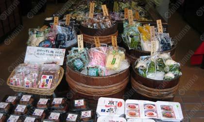 เท่านั้นยังไม่พอ วันรุ่งขึ้นพวกเราต้องตะกายพาสังขารเดินขึ้นเขาสูงชันเพื่อไปวัดที่มีอายุ เก่าแก่อีก วัดหนึ่ง คือ วัดคิโยมิซึ (Kiyomizu) วัดนี้มีวิหาร ใหญ่ตั้งอยู่บนไหล่เขา รองรับด้วยเสาไม้มหึมาและระเบียงใหญ่ยื่นชะโงกเหนือหุบเหวมองเห็นแต่ไกล เมื่อขึ้นมายืนบนระเบียงสามารถมองเห็นวิวของเกียวโตได้รอบด้าน ใครมาเกียวโตแล้วไม่ได้มาวัดแห่งนี้ถือว่ามาไม่ถึงเกียวโต แต่ที่พวกเราชอบมากที่สุดและทำให้หายเหนื่อยเป็นปลิดทิ้ง คือ การได้ช็อปปิ้งของที่ระลึกสองข้างทางระหว่างเดินลงจากเขา มีสารพัดของที่น่าสนใจ เช่น ชุดกิโมโน ร่มคันเล็กๆ พวงกุญแจ เสื้อผ้า กระเป๋า รองเท้า ของกินเล่น และที่ขาดไม่ได้ คือ ขนมแป้งห่อถั่วและถั่วห่อแป้ง (ขนมโมจิ) สัญลักษณ์ของญี่ปุ่น ที่มีรสชาติแตกต่างกันไป พร้อมทั้งหีบห่อที่วิลิศมาหรา ทำให้ขนมมีราคาแพงตามกระดาษที่ห่อ