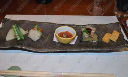 ความที่ร้านนี้ขึ้นชื่อเรื่องอาหาร และเชฟซึ่งเป็นเจ้าของร้านรู้ว่าผมและหมึกแดงมากินอาหารที่ร้าน เขาจึงออกมาคอยดูแลและถามเราว่ารสชาติอาหารเป็นอย่างไรบ้าง ชอบไหม ถูกปากไหม ผมเลยให้หมึกแดงเขาเป็นคนชม เพราะไม่รู้จะติอะไรมันอร่อยทุกอย่าง นอกจากนี้ เขายังคัดสรรสาเกที่สุดยอดของเกียวโตมาให้เราเลือกถึง 3 ขวด รสชาติแตกต่างกันไป เช่น ออกรสหวาน หรือจะชอบแบบเข้มข้น ผมเลยบอกว่าเอาทั้งสามขวดแล้วกัน ทั้งสาเก ทั้งเบียร์ หรุ (คนญี่ปุ่นเรียกเบียร์ว่าเบียร์หรุ) แถมยังต้องชนแก้ว คัมไปกับประธานบริษัท และเจ้าหน้าที่อาวุโส 3-4 คนที่มาร่วมกินอาหารกับเรา เล่นเอาเดินเซต้องให้หมึกแดงพยุงออกจากร้าน
