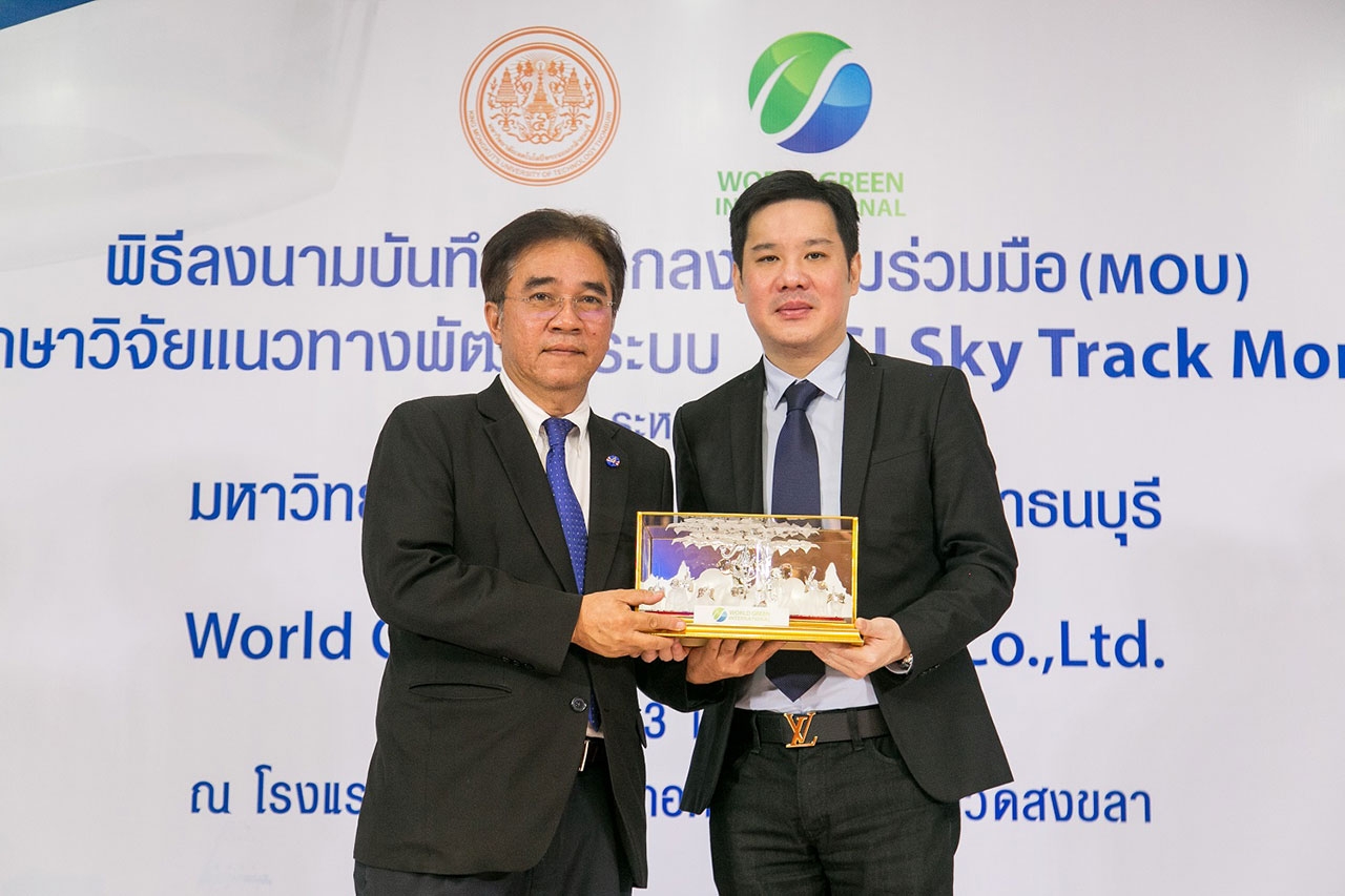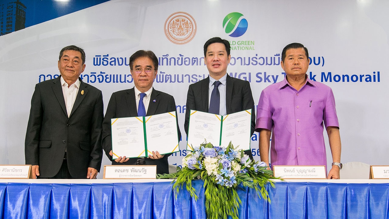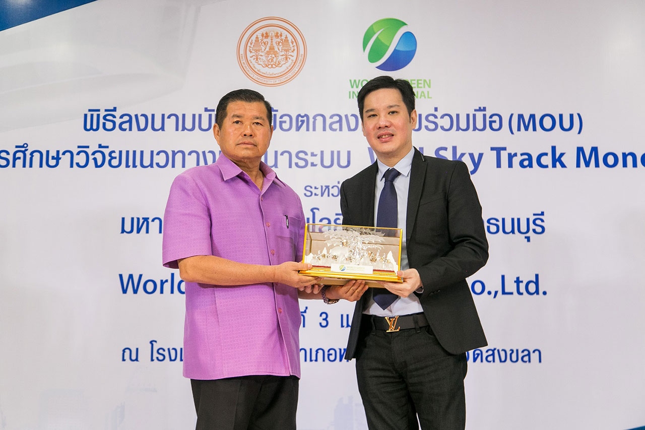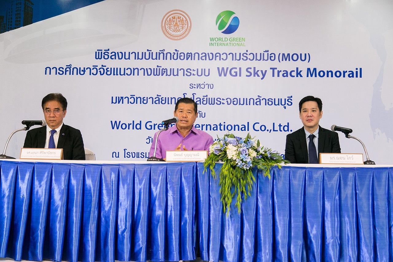 บริษัท เวิล์ด กรีน อินเตอร์เนชั่นแนล จำกัด (WGI) ผู้ดำเนินธุรกิจและที่ปรึกษาการลงทุนด้านเทคโนโลยีที่ทันสมัยและคำนึงถึงสิ่งแวดล้อม (Green Financing & Technology) จัดพิธีลงนามบันทึกข้อตกลงความร่วมมือทางวิชาการ ร่วมกับ มหาวิทยาลัยเทคโนโลยีพระจอมเกล้าธนบุรี (มจธ.) เพื่อศึกษาวิจัยแนวทางการพัฒนาระบบ WGI Sky Track Monorail ในอำเภอหาดใหญ่ มีเส้นทางตั้งแต่ สนามบินหาดใหญ่ถึงสถานีรถตู้ โดยภายในงานได้รับเกียรติจาก นายดลเดช พัฒนรัฐ ผู้ว่าราชการจังหวัดสงขลา ประธานในพิธี และนายกองค์การบริหารส่วนจังหวัดสงขลา นายนิพนธ์ บุญญามณี ให้เกียรติเป็นสักขีพยาน ในการลงนามระหว่าง รศ. เอนก ศิริพานิชกร ผู้อำนวยการ สวท. มหาวิทยาลัยเทคโนโลยีพระจอมเกล้าธนบุรี ประธานสาขาวิศวกรรมโยธา วิศวกรรมสถานแห่งประเทศไทยฯ และ มร. ฌอน โกว์ (Mr. Sean Goh) กรรมการบริหาร บริษัท เวิลด์ กรีน อินเตอร์เนชั่นแนล จำกัด เพื่อดำเนินการศึกษาถึงความเป็นไปได้ในการพัฒนาระบบ “WGI Sky Track Monorail รถไฟลอยฟ้า” นวัตกรรมใหม่ที่ทันสมัยและใส่ใจสิ่งแวดล้อม โดยการขับเคลื่อนด้วยแบตเตอรี่ลิเทียม ในการนำมาพัฒนาระบบคมนาคมภายในจังหวัดให้มีความสะดวกและทันสมัย ขานรับนโยบายไทยแลนด์ 4.0 ของภาครัฐ และนโยบายการพัฒนา 90 เมือง ใน 10 ประเทศของ ASEAN Smart City