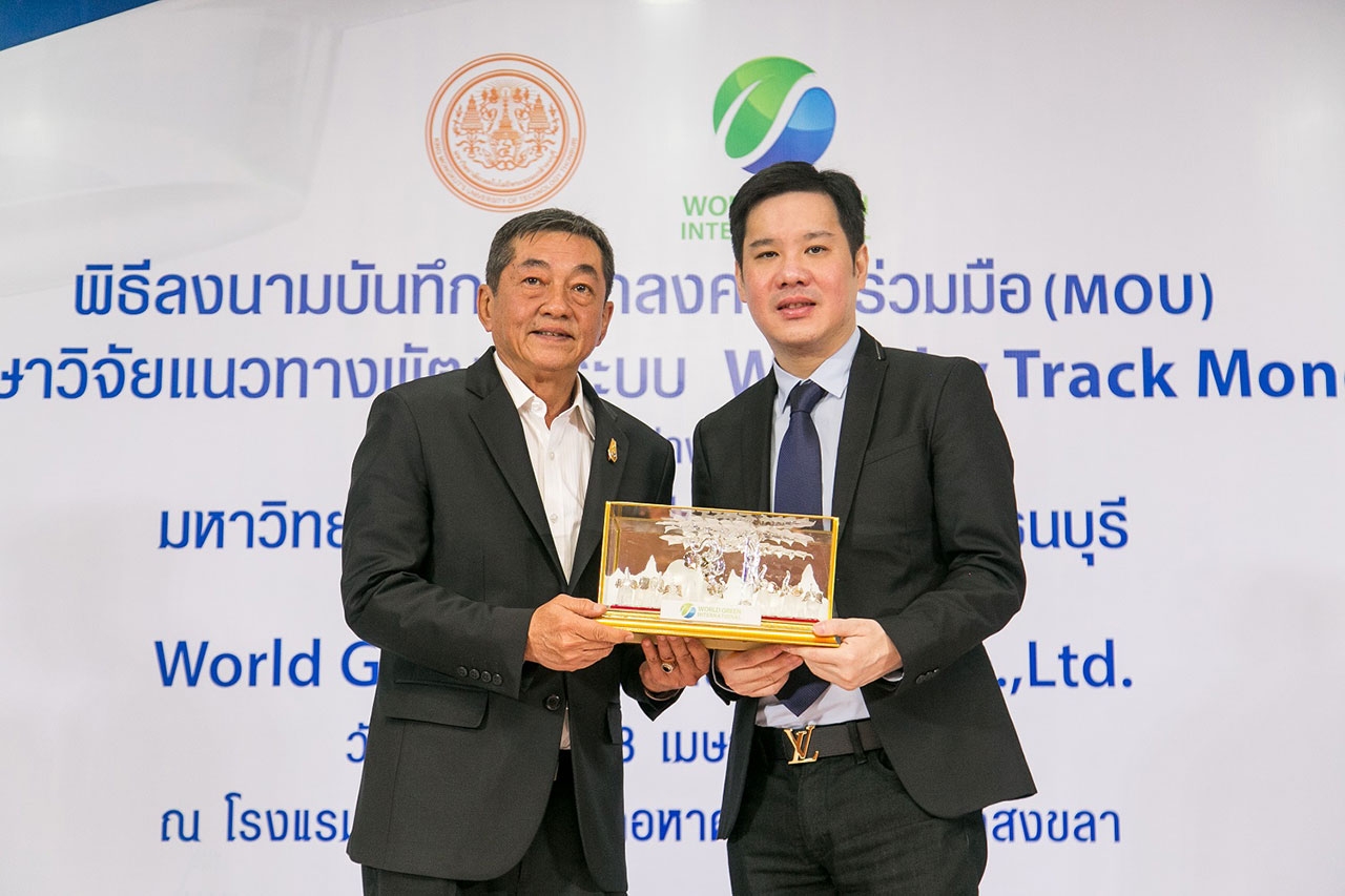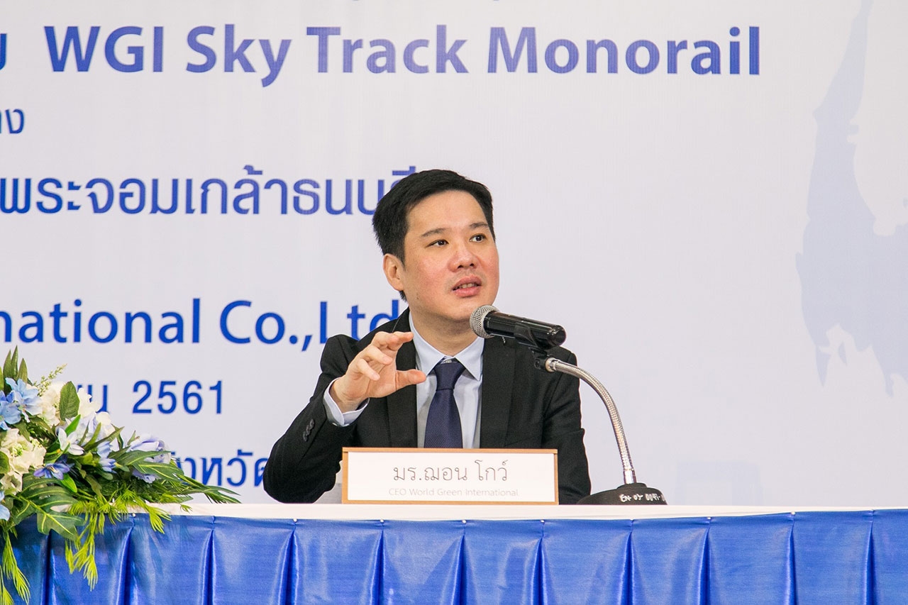 มร. ฌอน โกว์ (Mr. Sean Goh) กรรมการบริหาร บริษัท เวิลด์ กรีน อินเตอร์เนชั่นแนล จำกัด กล่าวว่า “เรามีความยินดีอย่างยิ่ง ที่จะนำระบบรถไฟลอยฟ้านวัตกรรมใหม่ที่เป็นมิตรกับสิ่งแวดล้อมเข้ามาพัฒนาในประเทศไทย จึงได้ร่วมมือกับทางมหาวิทยาลัยในการให้ทุนศึกษาวิจัยถึงความเป็นไปได้ ข้อดี และข้อเสียต่างๆ โดยไม่ส่งผลกระทบต่อระบบคมนาคมขนส่งเดิมที่มี และยังสามารถขจัดข้อเสียบางประการของระบบขนส่งที่ใช้เทคโนโลยีที่ทันสมัยแต่มักมาพร้อมกับการทำลายสิ่งแวดล้อมได้ เนื่องจาก WGI Sky Track เป็นรถไฟลอยฟ้าที่ขับเคลื่อนด้วยแบตเตอรี่ลิเทียมจึงลดการปล่อยก๊าซคาร์บอน นอกจากนี้ตัวรถแต่ละขบวนจะมีแบตเตอรี่ลิเทียมบรรจุอยู่ภายใน นั่นหมายความว่าจะสามารถเพิ่มจำนวนตู้ขบวนได้ในช่วงที่ต้องใช้รองรับผู้โดยสารจำนวนมาก หรือในช่วงเวลาเร่งด่วน และสามารถถอดตู้ขบวนออกได้ในเวลาที่ไม่จำเป็น ซึ่งเป็นการประหยัดพลังงานและช่วยลดต้นทุนการดำเนินงานได้อย่างมีประสิทธิภาพ ทั้งยังเป็นมิตรกับสิ่งแวดล้อมอีกด้วย” มร. ฌอน โกว์ (Mr. Sean Goh) กล่าวทิ้งท้าย