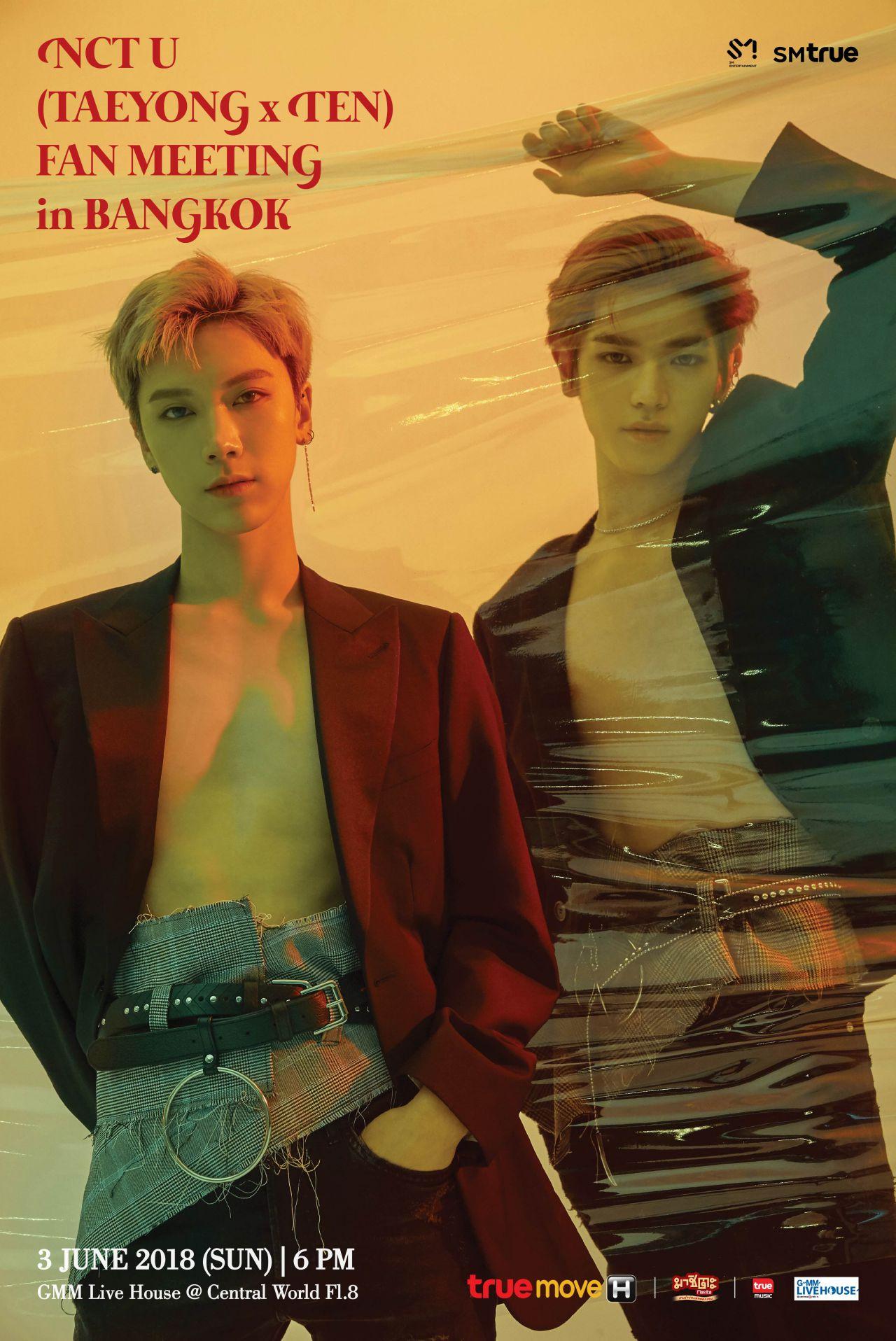 ‘TAEYONG x TEN’ (แทยง x เตนล์) ดูโอ้คู่แรกแห่ง ‘NCT U’ (เอ็นซีที ยู) กำลังจะมาคว้าหัวใจของทุกคน เพราะ SM True (เอสเอ็ม ทรู) ผู้จัดงาน และต้นสังกัดในประเทศไทย เตรียมจัดแฟนมีตติ้งสุดเอ็กซ์คลูซีฟ “NCT U (TAEYONG x TEN) FAN MEETING in BANGKOK” (เอ็นซีที ยู แทยง แอนด์ เตนล์ แฟนมีตติ้ง อิน แบงค็อก) วันอาทิตย์ที่ 3 มิถุนายน 2561 เวลา 18.00 น. ณ จีเอ็มเอ็ม ไลฟ์เฮ้าส์ ชั้น 8 ศูนย์การค้าเซ็นทรัลเวิลด์