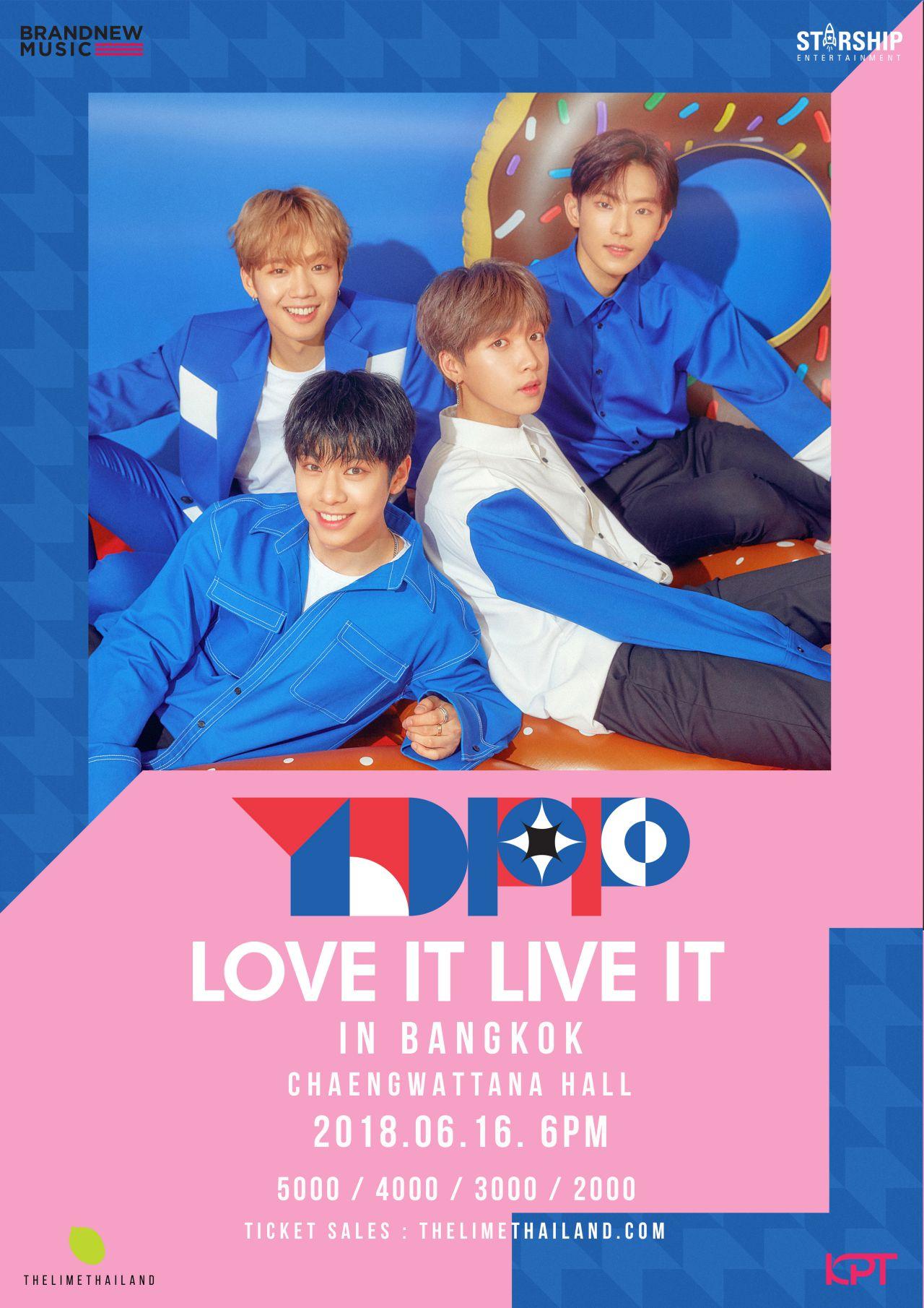 พวกเขาพร้อมแล้วที่จะมาเขย่าหัวใจของคุณ และมอบความน่ารักจนทำให้คุณฟินไปอีกนาน กับการมาไทยครั้งแรกของเขา ในวันเสาร์ที่ 16 มิถุนายน 2561 ที่ แจ้งวัฒนะฮอลล์ ศูนย์การค้าเซ็นทรัลพลาซา แจ้งวัฒนะ บัตรราคา 2,000 / 3,000 / 4,000 และ 5,000 บาท เปิดจำหน่ายบัตรพร้อมกันทั่วประเทศในวันอาทิตย์ที่ 6 พฤษภาคมนี้ ที่ www.thelimethailand.com ติดตามความเคลื่อนไหวและอัพเดตข่าวสารได้ที่ #YDPPLoveitLiveitinBKK / www.thelimethailand.com / www.facebook.com/TheLimeThailand และ Twitter : @TheLimeThailand