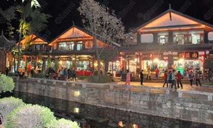 เราไปถึงหลี่เจียงตอนค่ำ ได้ไปรับประทานอาหารเย็นที่โรงแรมหลี่เจียงแกรนด์ ซึ่งเขาบอกว่า เจ้าของเป็นคนไทย เราจึงได้กินอาหารไทย เช่น แกงเขียวหวานหมู หมูแดดเดียว ต้มยำไก่ ลาบหมู สถานที่ตั้งของโรงแรมนี้เป็นชัยภูมิที่ดีที่สุดที่นักท่องเที่ยวสามารถเดิน ไปชมทัศนียภาพในยามค่ำคืนของหลี่เจียงได้เป็นอย่างดี แต่สำหรับผมขอนั่งจิบน้ำชาร้อนๆรออยู่ในล็อบบี้ มองดูผู้คนโดยเฉพาะคนไทยที่เดินขวักไขว่ไปมาจนเวียนหัวไปหมด