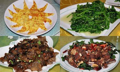 จากคุนหมิงเราออกเดินทางโดยรถโค้ชไปเมืองโบราณ คือ เมืองต้าลี่ แวะกินอาหารเย็นที่ภัตตาคารระหว่างทาง อาหารแถบนี้ถูกปากคนไทยเพราะเป็นอาหารยูนนานที่เรารู้จักกันดีเหมือนที่เคย กินบนดอยแม่สลอง คือ เป็นอาหารรสจัด บางอย่างจะออกเผ็ดเสียด้วย เช่น หมุ่ยฉอยเข่าหยก (หมูสามชั้นนึ่งกับผักกาดอบแห้ง) ยำเห็ดหูหนู ต้มจืดฟักกับกระดูกหมู ป๋วยเล้งผัดน้ำมันหอย ไก่อบหนังกรอบ ไก่นึ่งซีอิ๊ว กระดูกหมู/ปลา/หมูสามชั้นทอดกรอบผัดพริกแห้ง ปลาแม่น้ำนึ่งซีอิ๊ว และที่ขาดไม่ได้ต้องมีทุกมื้อคือ ไข่เจียวตำรับจีน ที่ทอดเสร็จแล้วต้องหั่นเป็นชิ้นๆเหมือนพิซซ่า ดังนั้น ทุกมื้ออาหารจึงไม่ได้ยินเสียงบ่นจากผู้ที่ไปเที่ยวครั้งนี้ว่าอาหารไม่ อร่อยเพราะกินเรียบทุกอย่าง ส่วนของหวานจะเป็นผลไม้รวม มีแตงโม มะเขือเทศ ส้มเช้ง