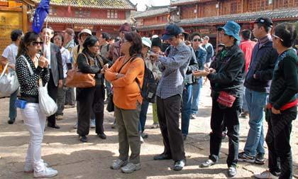 ช่วงบ่ายได้ นั่งรถม้าชมบริเวณเมืองโบราณซู่เหอ ซึ่งเป็น หมู่บ้านโบราณมีอายุกว่า 900 ปี ของชาวเผ่าน่าซีที่ยังรักษาบ้านช่องสองข้างทางเหมือนเมืองจีนสมัยโบราณ เพียงแต่ปรับปรุงให้เป็นร้านขายของ ร้านอาหาร และที่พัก เพื่อให้นักท่องเที่ยวได้ช็อปปิ้งสินค้าหัตถกรรมฝีมือชาวบ้าน เช่น เสื้อผ้า ผ้าคลุมไหล่ รองเท้าผ้า เครื่องประดับเงิน ภาพวาด ของที่ระลึกต่างๆ แต่ที่น่าสนใจที่สุดสำหรับคุณผู้หญิงที่จะต้องซื้อให้จงได้ คือ กระเป๋าที่ทำมาจากหนังจามรีแท้ๆ เพราะที่นี่เป็นที่แห่งเดียวที่มีตัวจามรีมาก ดังนั้น กระเป๋าหนังจามรีแท้ๆ จึงมีราคาไม่แพง แถมยังออกแบบสวยเก๋และต้องเป็นสีขาวเท่านั้นนะ จึงจะถือว่าทำมาจากหนังจามรี คณะของเราไม่พลาดซื้อกันทุกคน ใครจะไปเดินดูความสวยงามของเมืองเก่าก็เชิญ แต่ผมปักหลักนั่งดื่มเบียร์เหเหล็ก (ไฮเนเก้น) แกล้มกับปลาเล็กปลาน้อยเสียบไม้ทอดกรอบโรยพริกป่นและเกลือเล็กน้อย อร่อยจนฝันถึง กินไปประมาณ 20 ไม้ เพราะราคาไม้ละ 2 หยวน